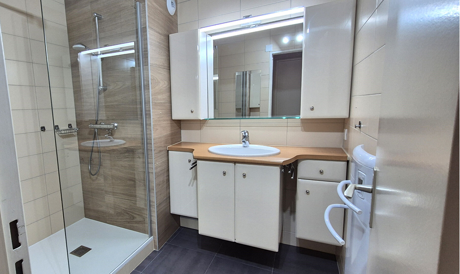 Appartement 3 pièces (T3) de 81 m² situé dans une résidence calme et sécurisée à Bourg-en-Bresse. La résidence se trouve au coeur d'un parc privé arboré et fleuri, offrant un cadre de vie agréable et paisible. Le logement est traversant et lumineux. Il bénéficie d'une localisation très pratique à proximité immédiate du Monastère de Brou. De nombreux commerces sont accessibles à pied : pharmacie, boulangerie, boucherie, tabac presse alimentation, coiffeur, pressing, ainsi qu'une grande surface (à moins de 500 m). Une ligne de bus est disponible juste à côté de la résidence et le centre-ville se situe à environ 1 km. L'appartement comprend un vaste séjour-salon avec accès à un beau balcon. Il possède une cuisine aménagée semi-ouverte dont les meubles sont équipés de LEDs intégrées assurant offrant une luminosité optimale et un grand confort d'utilisation (un aménagement de qualité conçu initialement pour un besoin spécifique). On y trouve également deux chambres, une salle d'eau entièrement rénovée avec une grande douche, des toilettes séparées et une pièce buanderie. En annexe, une vaste cave est disponible en rez-de-chaussée. La résidence dispose d'un parking collectif fermé. Il est cependant possible de louer en supplément un parking privatif (30 €/mois) et/ou un garage box fermé (75 €/mois).