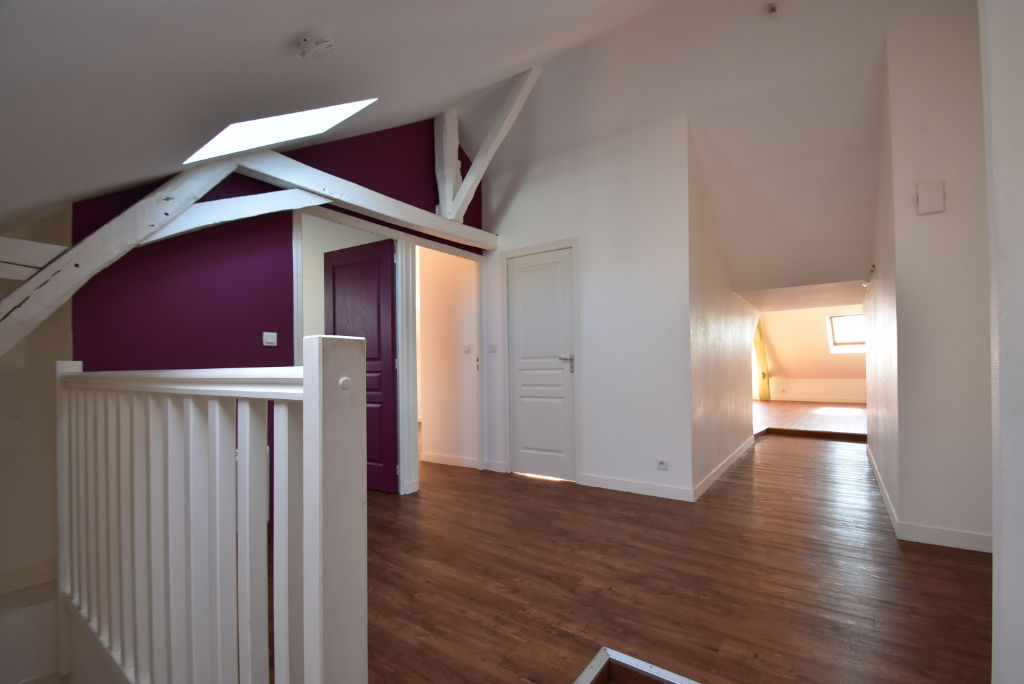BRISSAC CENTRE BEL APPARTEMENT DE TYPE 3 DUPLEX REFAIT A NEUF AU DERNIER ETAGE A 2 PAS DES COMMERCES comprenant une vaste entrée, grande pièce de vie avec cuisine aménagée ouverte, 2 chambres, et SDD avec WC, cave.