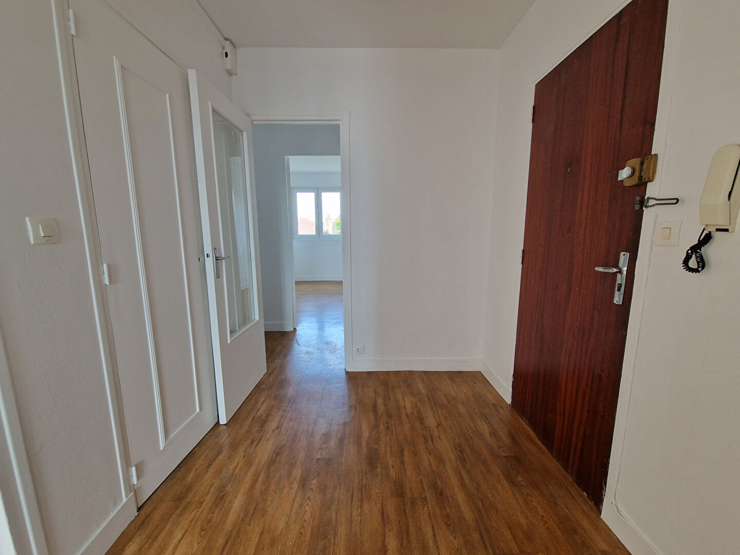Appartement de 3 pièces principales comprenant une grande entrée, une cuisine (kitchenette), un séjour, 2 chambres, un w.c et une salle de bain.