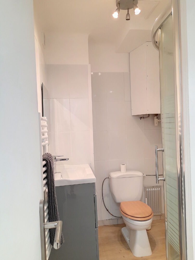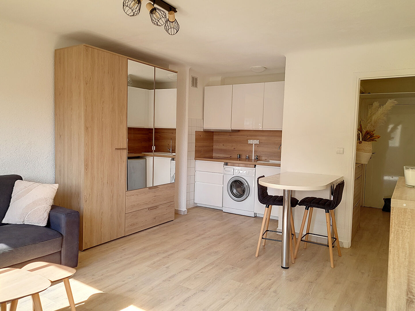 CANNES, centre ville, appartement de type studio, loué meublé à l'année, comprenant un hall d'entrée, une salle d'eau avec wc, une pièce principale avec kitchenette. Exposition Sud.