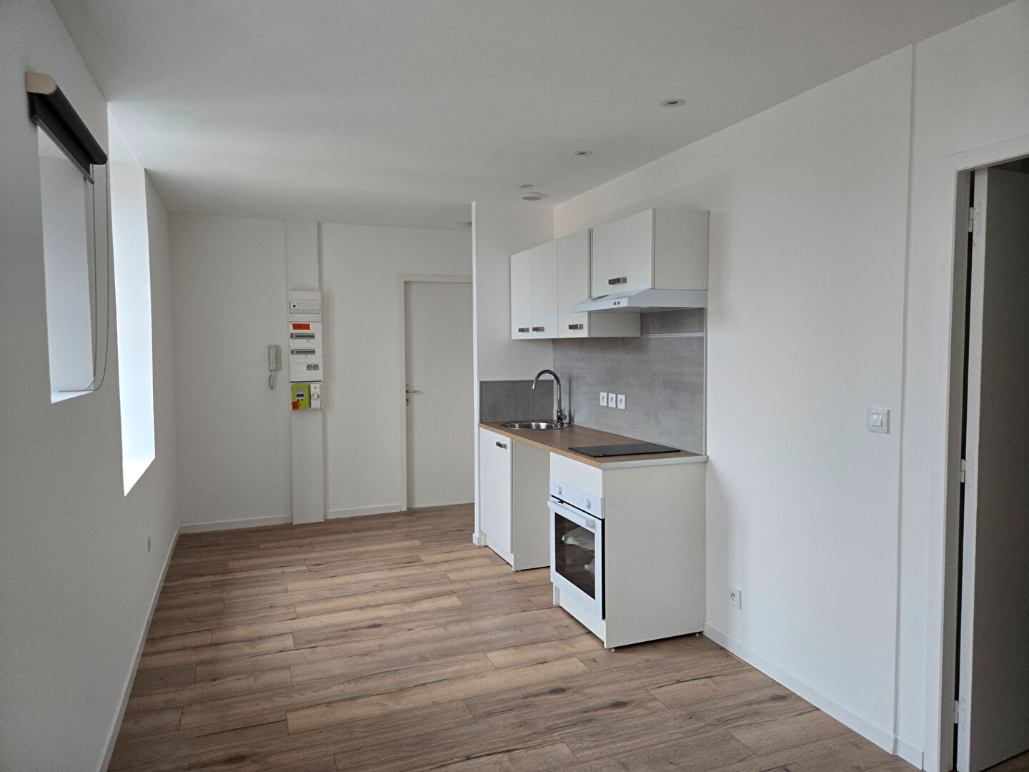 Il se compose d'une pièce de vie avec cuisine équipée (meubles, plaques, four), d'une chambre et d'une salle d'eau fonctionnelle.