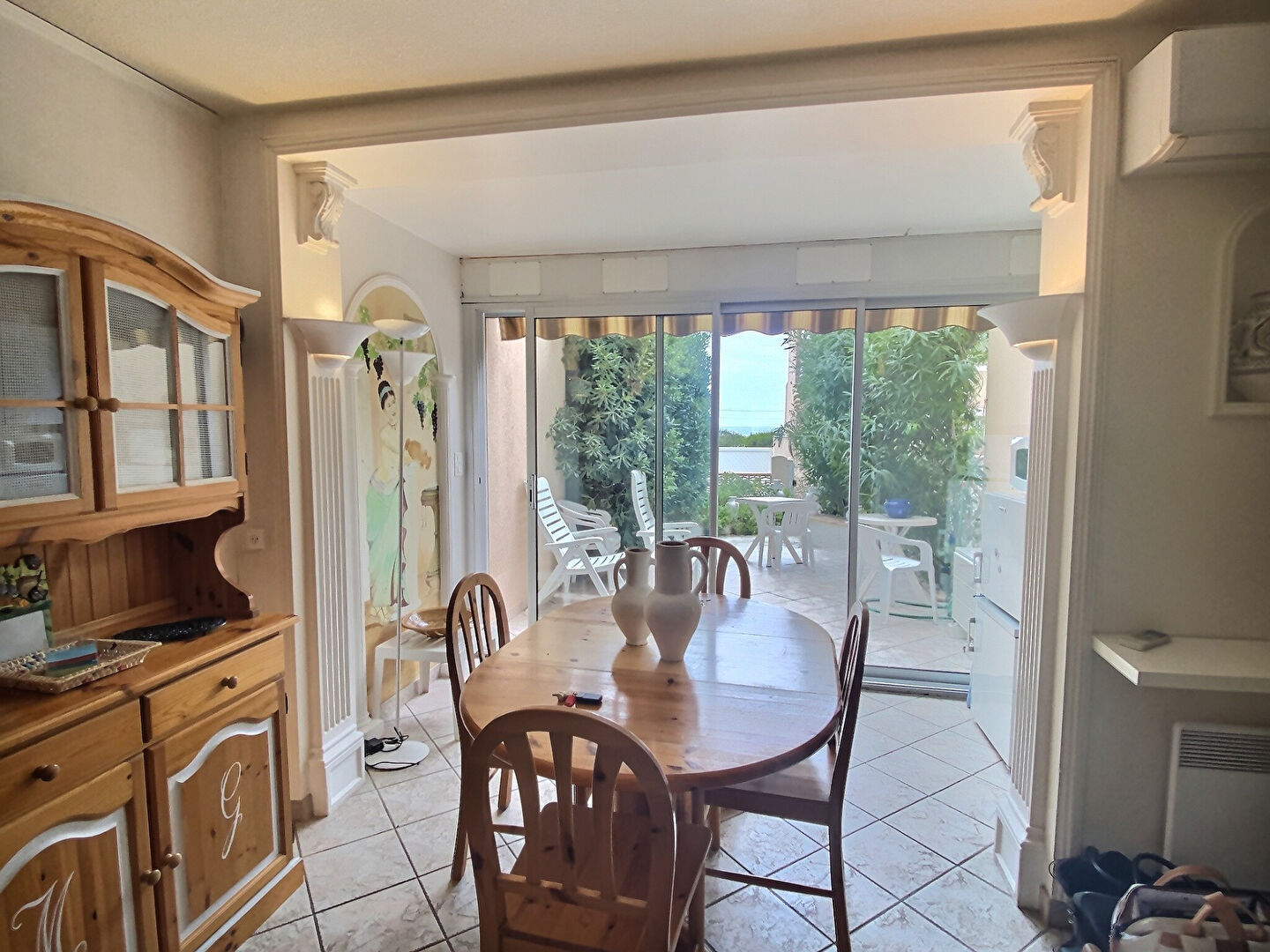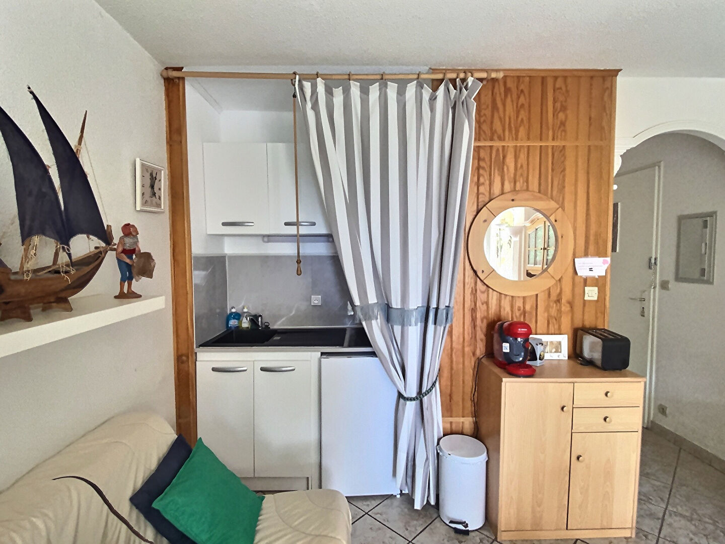 A louer dans une résidence sécurisée face mer, ce charmant rez-de-jardin de 27 m2 entièrement meublé, comprenant une chambre avec placards de rangement, une kitchenette équipée et aménagée, une salle de douche, un grand séjour lumineux donnant accès par de grandes baies vitrées au jardin vue mer exposition sud. Idéal pour un couple ou une personne seule en quête de tranquillité et de confort.