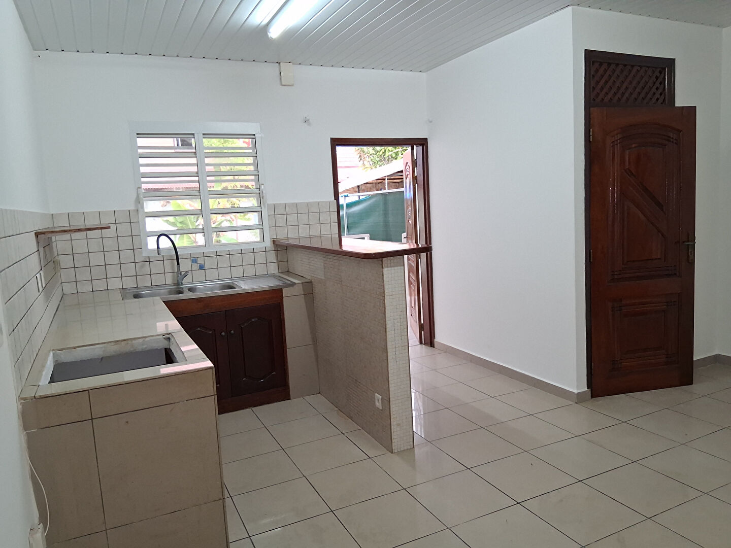 Situé au centre-ville de Cayenne , à louer un appartement de type 2 au rez-de-chaussée , composé de : un séjour, un coin cuisine, une chambre, une salle d'eau avec WC, une buanderie, le tout donnant sur une belle terrasse .
