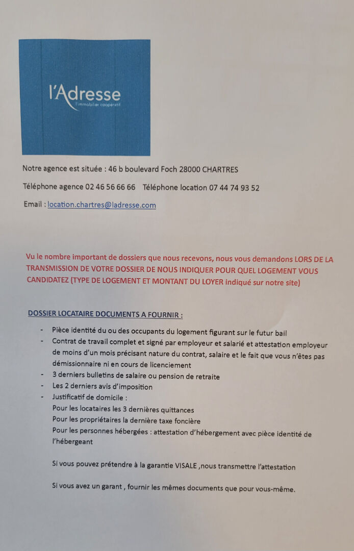 ET DOSSIER LOCATAIRE A DEPOSER AVANT VISITE