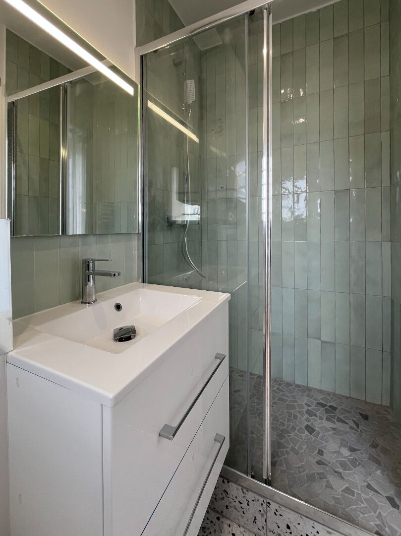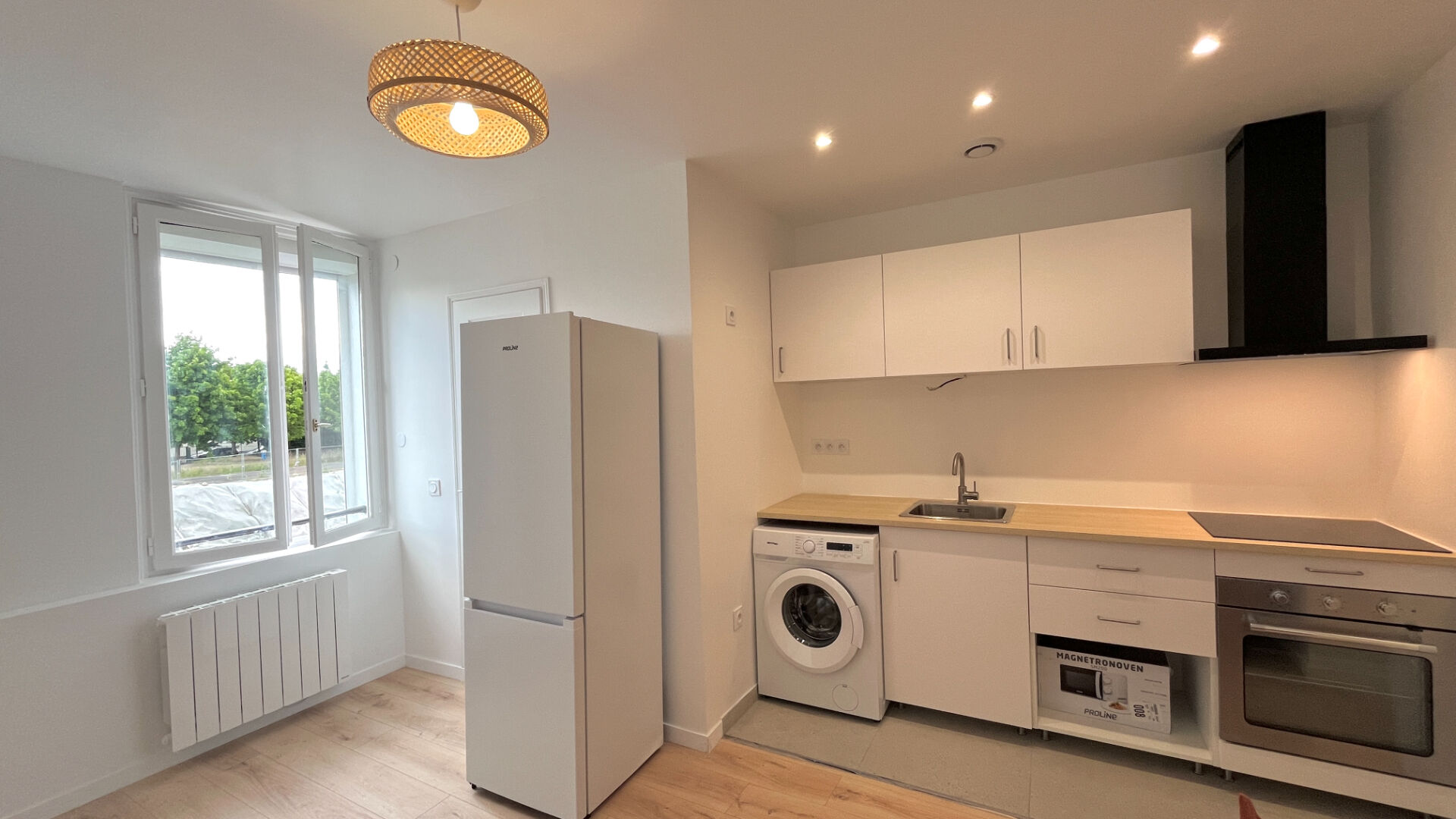 Proximité immédiate de la gare CLICHY - LEVALLOIS - Rue Petit, dans une belle copropriété avec gardien, au 1er et dernier étage du bâtiment sur cour, un charmant deux pièces entièrement refait comprenant : entrée, séjour (canapé convertible) avec cuisine ouverte aménagée équipée (frigo, congélateur, micro-onde, four, hotte, machine lave linge) , chambre avec rangements (lit 1,80x200), salle d'eau avec w.c.