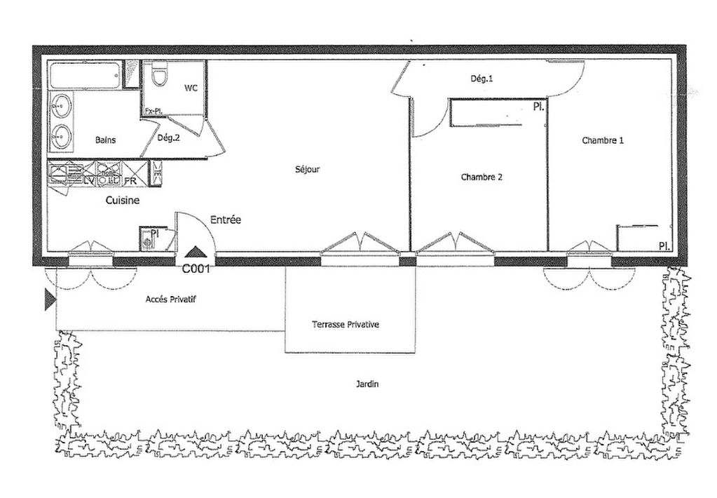 DOURDAN, centre ville à pied, résidence récente, appartement de 3 pièces lumineux avec jardin privatif comprenant un séjour avec cuisine ouverte aménagée et équipée, deux chambres avec placards, une salle de bains. Deux places de parking.