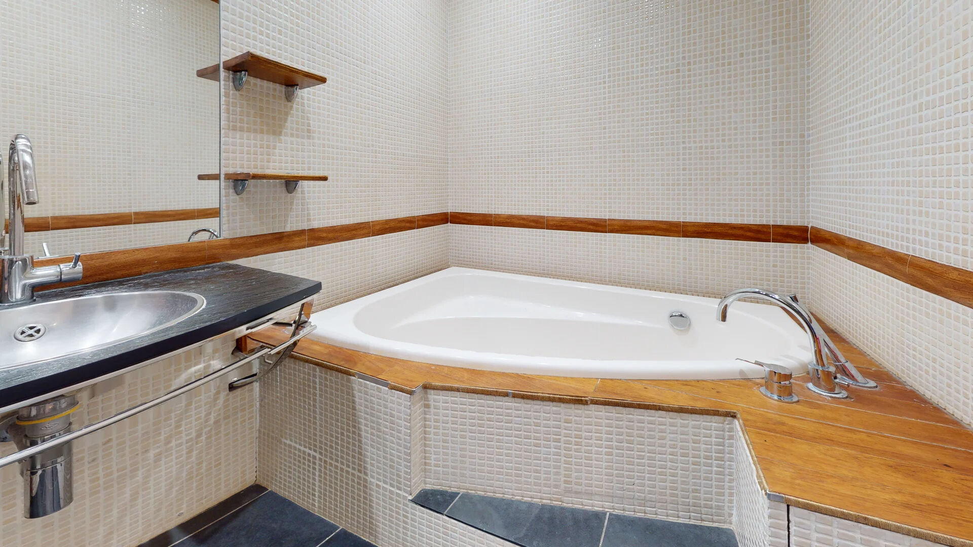 L'appartement comprend une belle pièce de vie donnant sur une terrasse de 20 m² sans vis-à-vis offrant une vue dégagée sur un parc arboré.
