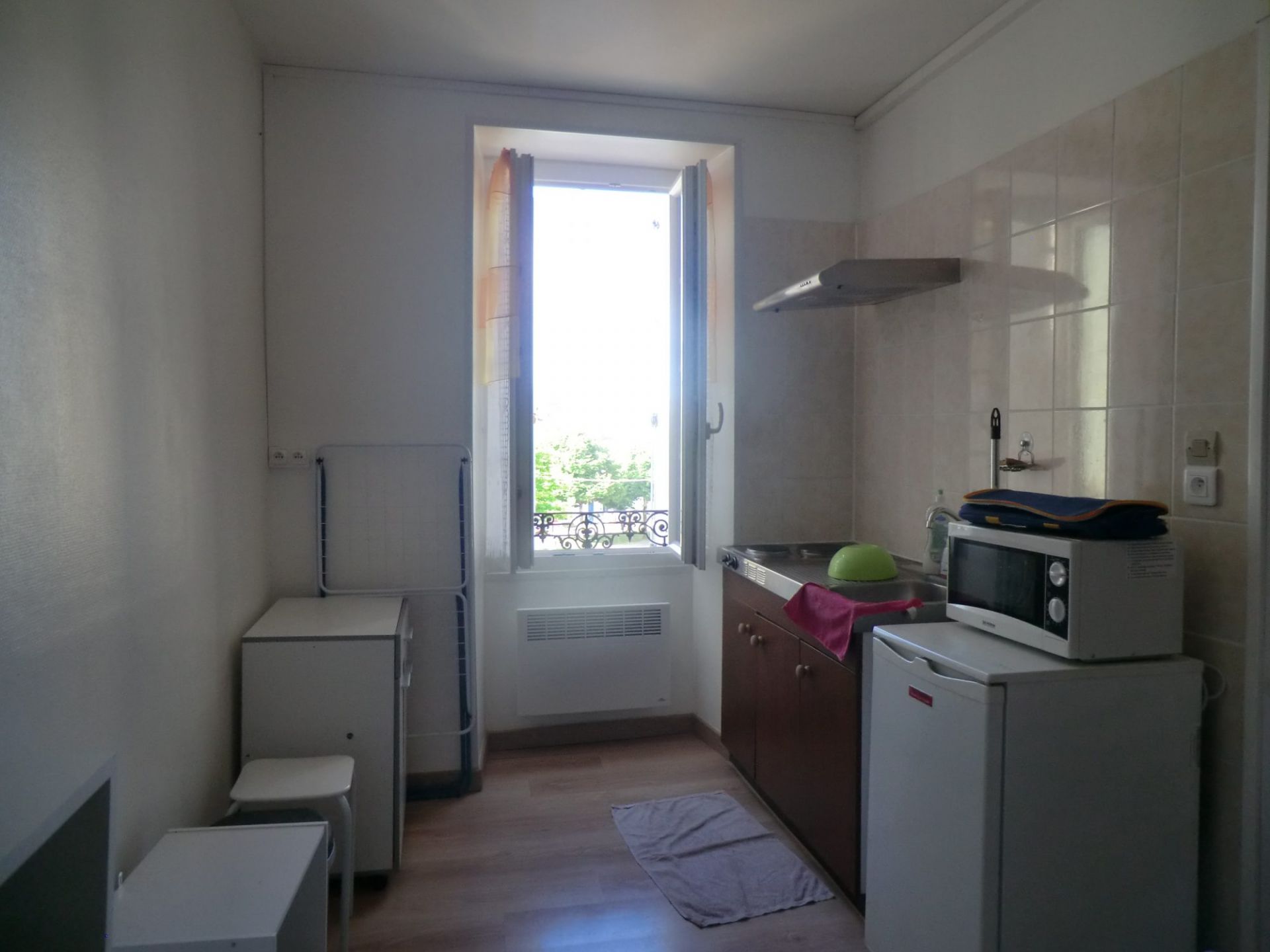 Au coeur de la ville, studio meublé, situé au 1er étage dans un immeuble calme et sécurisé, comprenant une pièce vie, une salle d'eau avec WC.
