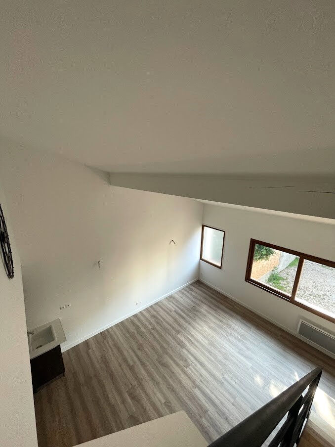 Il se compose au rez-de-chaussée d'un toilette à l'entrée, d'une cuisine ouverte sur salon/séjour meublée et partiellement équipée (plaques vitro, hotte) et d'une chambre avec salle d'eau.
