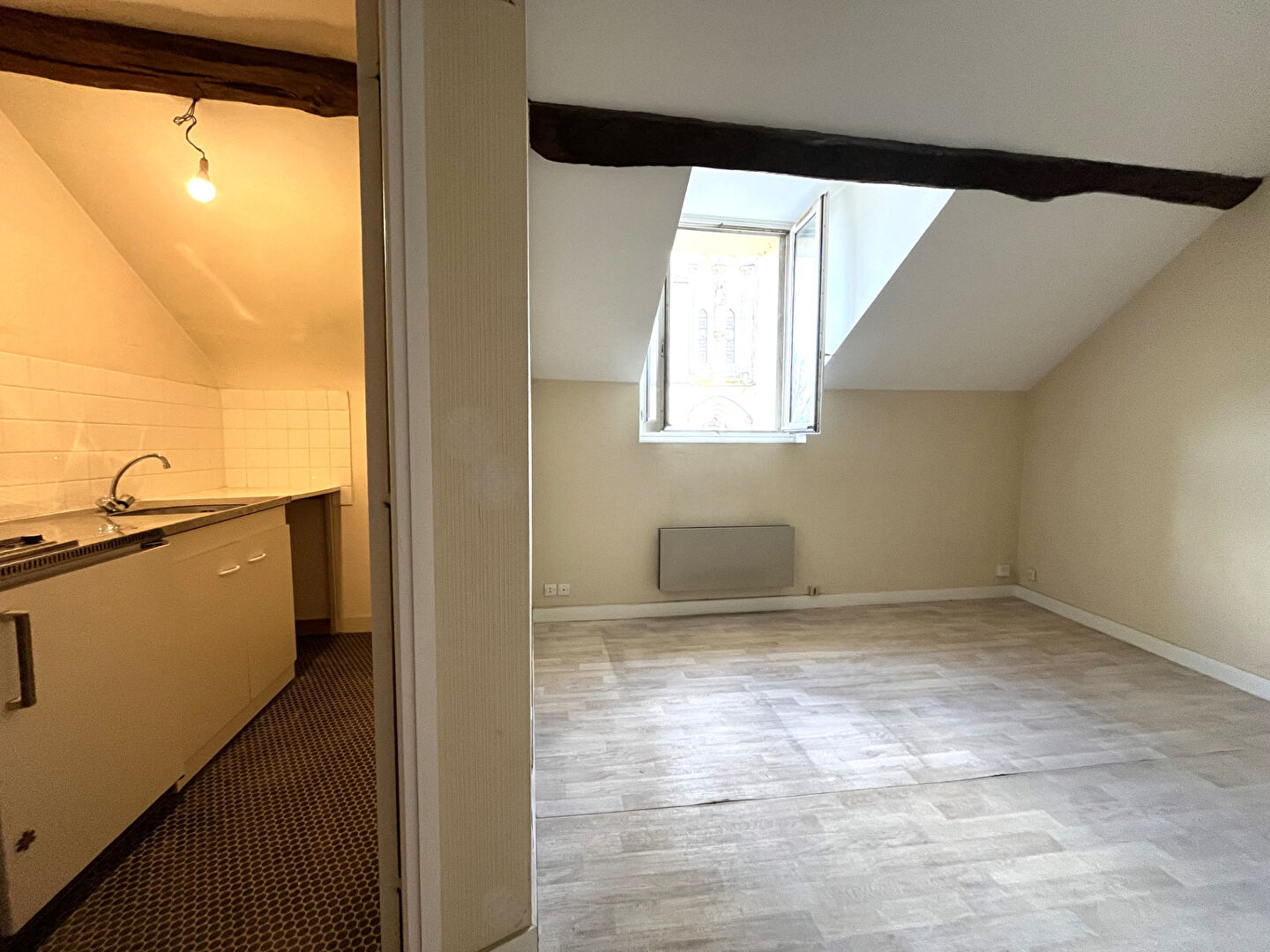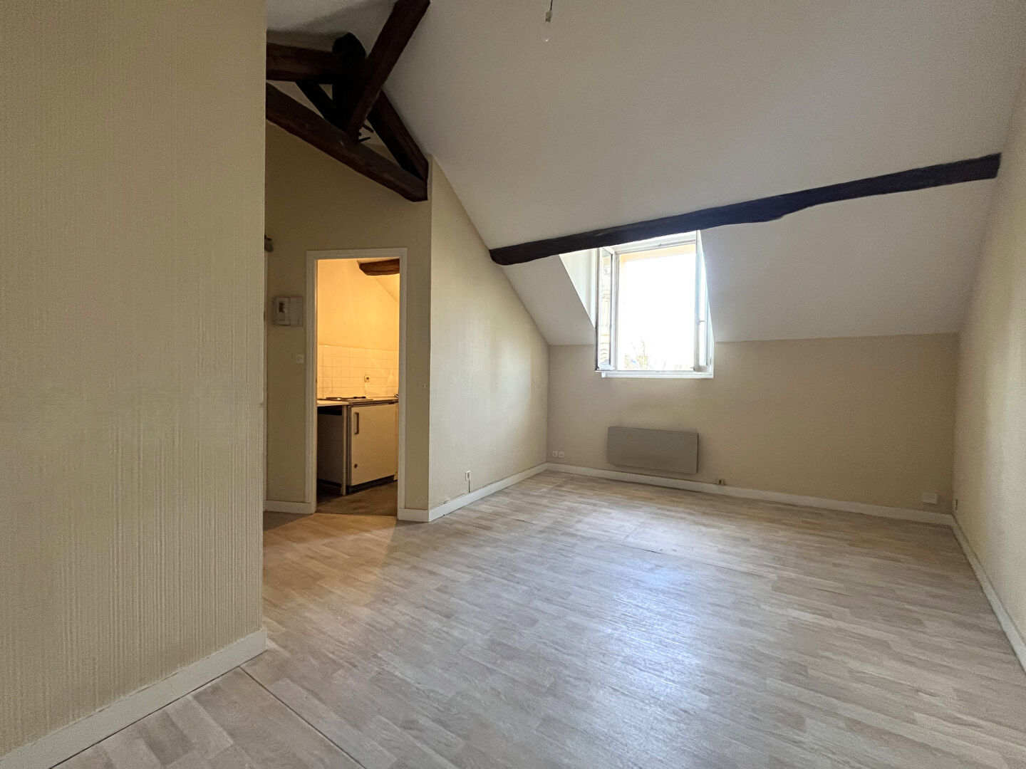 Studio de près de 27m² situé au dernier étage. Il se compose d'une pièce de vie, une cuisine aménagée/équipée (plaque, réfrigérateur), une salle d'eau.
