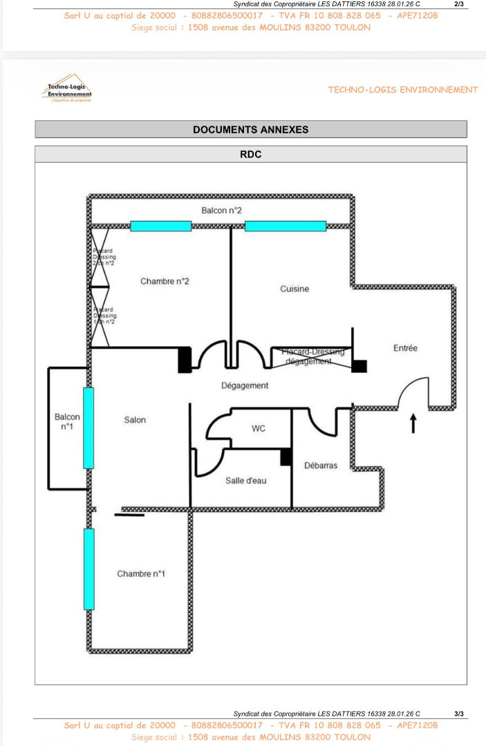 Appartement T3 situé au rdc, comprenant 1 entrée, 1 cellier, 1 cuisine, 1 salon, 2 chambres, 1 salle d'eau et un wc.