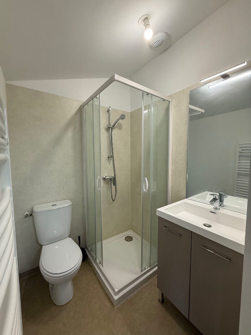 Proche des commerces, dans ensemble immobilier refait à neuf de 8 logements, studio meublé rénové avec goût au 1er étage mansardé de 11.20 m² (surface au sol de 15 m² environ) avec jardin commun composé d'une pièce de vie avec kitchenette aménagée et équipée, salle d'eau avec wc. Eau, EDF et TOM incluses.