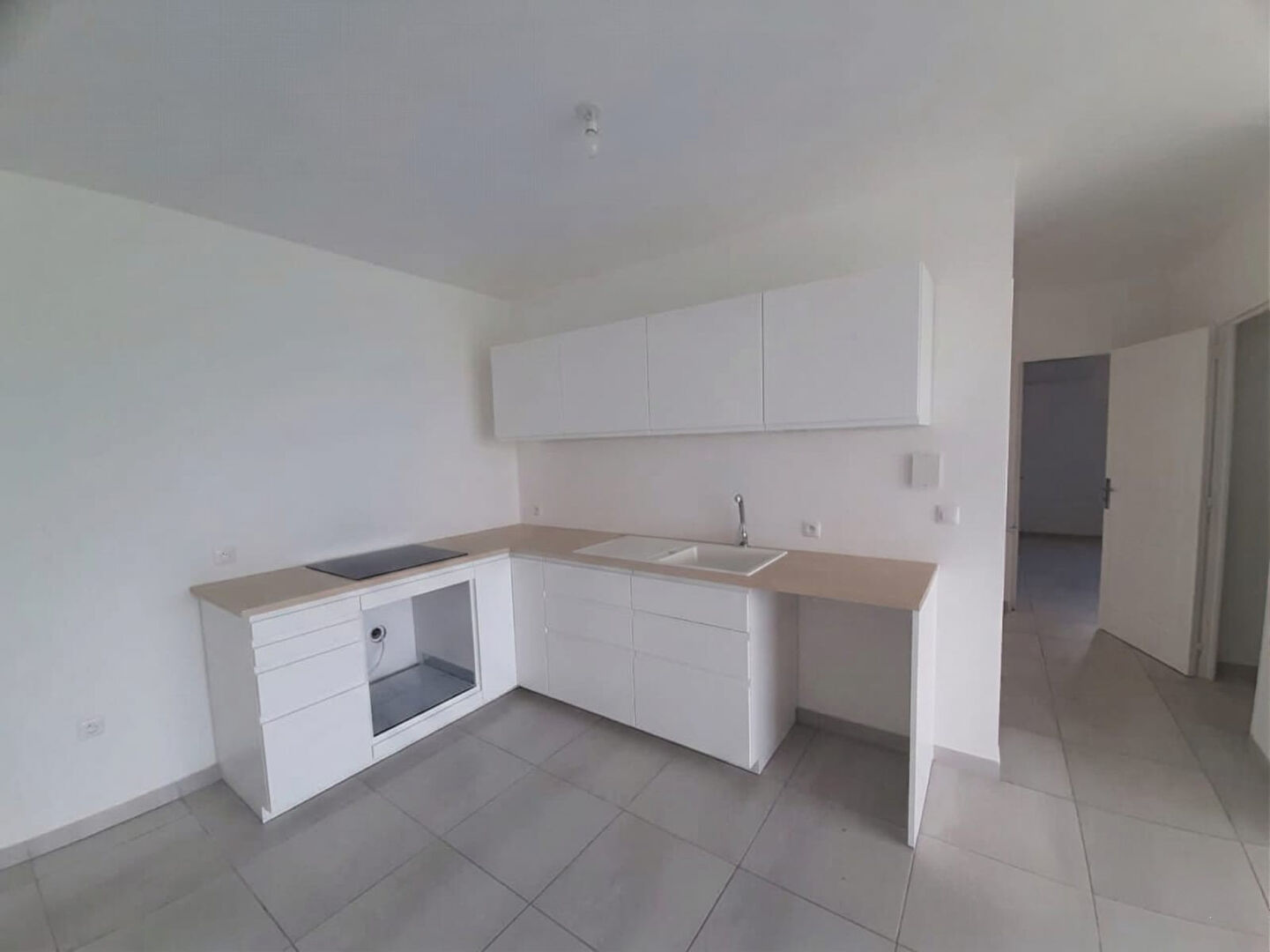 Cuisine moderne : Entièrement équipée avec meubles hauts et bas, et plaques électriques intégrées.