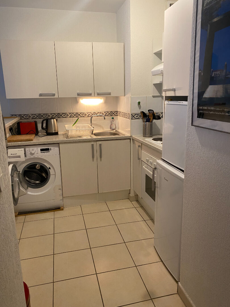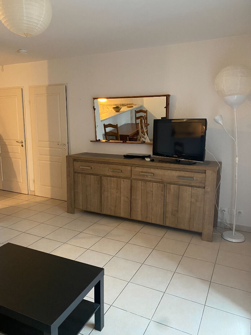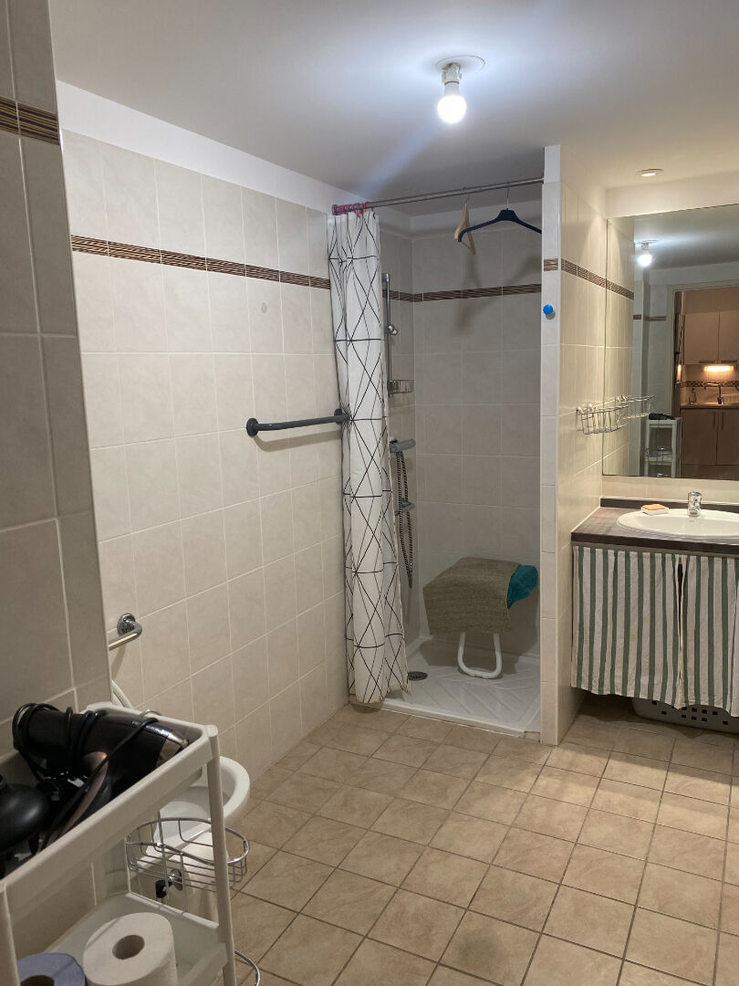 Dans copropriété récente et sécurisée, appartement meublé type F2, situé au 1er étage avec ascenseur, comprenant un séjour avec coin cuisine équipée et aménagée, salle d'eau avec tabouret pliant PMR dans la douche + WC adapté, 1 chambre avec placard, climatisation réversible dans le séjour, fenêtres double vitrage, terrasse de 8 m². Parking à l'extérieur de la résidence.