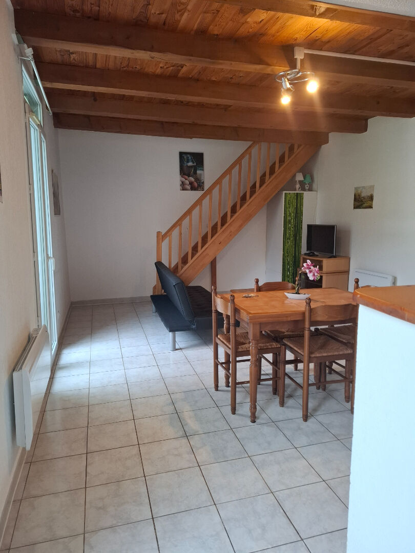 Joli appartement meublé, de type F3, en duplex, comprenant au premier niveau, une belle cuisine aménagée ouverte sur le séjour. A l'étage se trouvent deux chambres et une salle de bains avec WC. Une cave est affectée à cet appartement.
