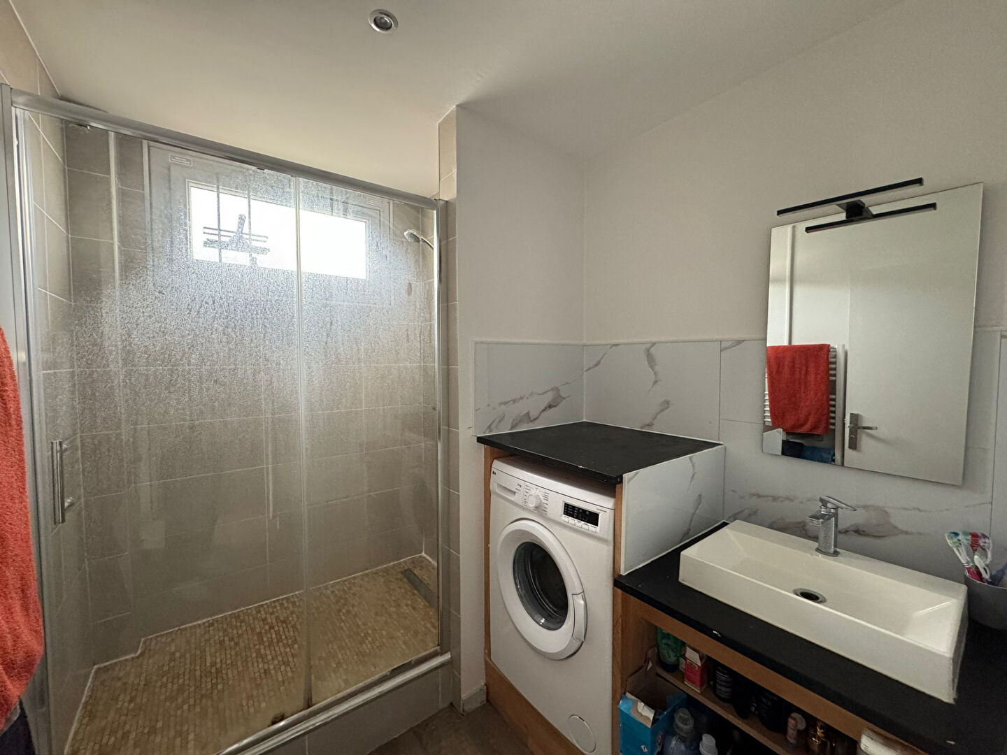 Cet appartement se compose d'une entrée desservant une pièce de vie lumineuse, une cuisine séparée, aménagée et équipée (plaque, hotte, four, lave-vaisselle et réfrigérateur combiné).