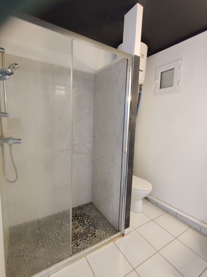 Une salle d'eau moderne avec une douche à l'italienne et un WC.