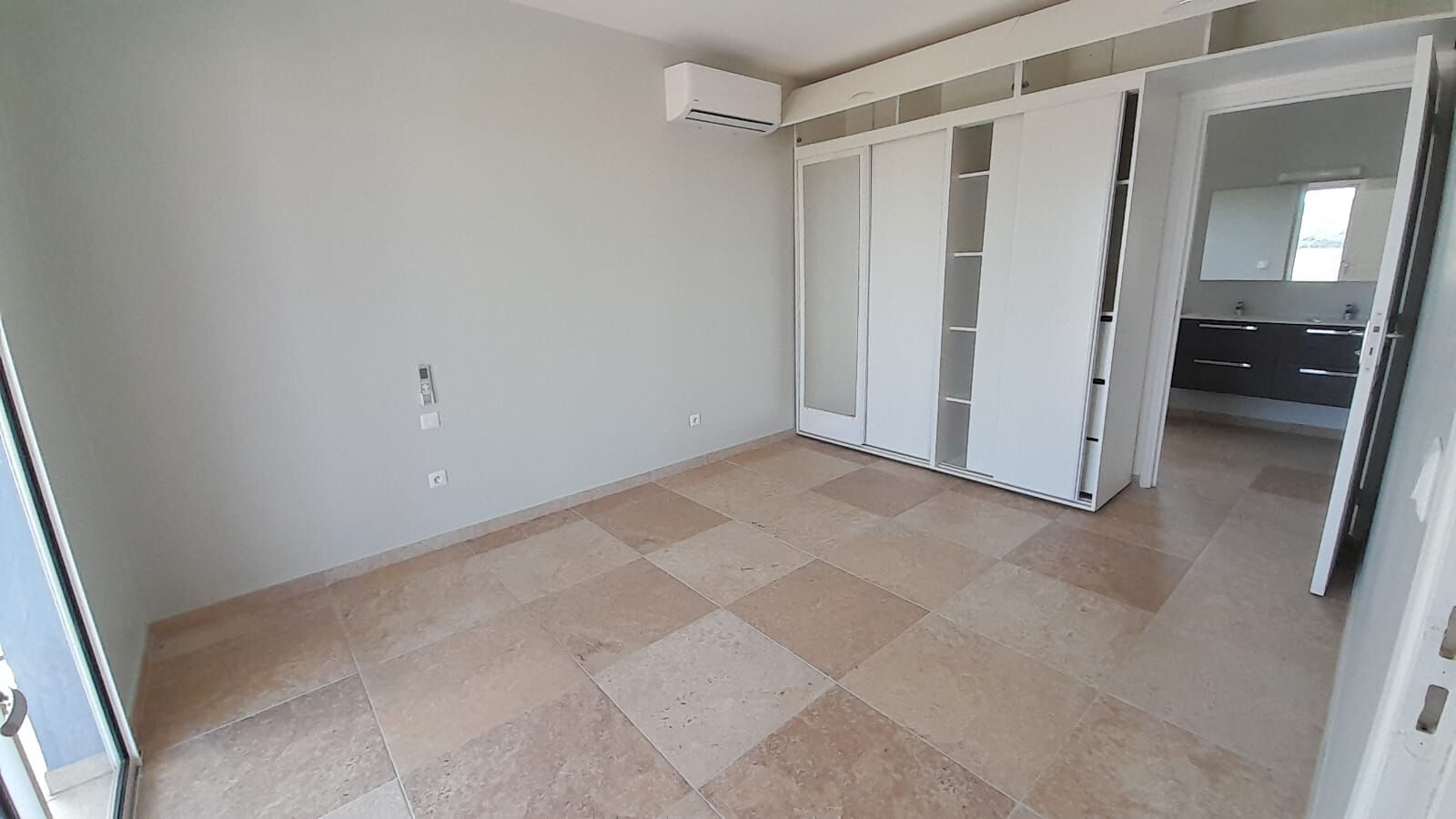 Deux chambres climatisées avec salle d'eau attenante + WC, un séjour avec cuisine ouverte entièrement aménagée meuble haut et bas semi-équipée (plaque de cuisson), un dégagement, une terrasse offrant une très jolie vue.