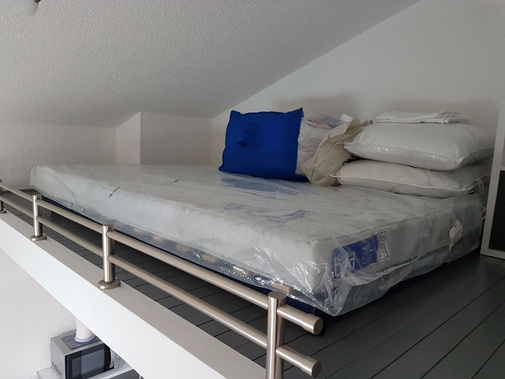 Magnifique studio meublé avec mezzanine sur le port Olonna, vu sur les bateaux comprenant une pièce de vie avec kitchenette toute équipée, une entrée avec 2 placards, une salle d'eau, un wc, une loggia et une place de parking privative .