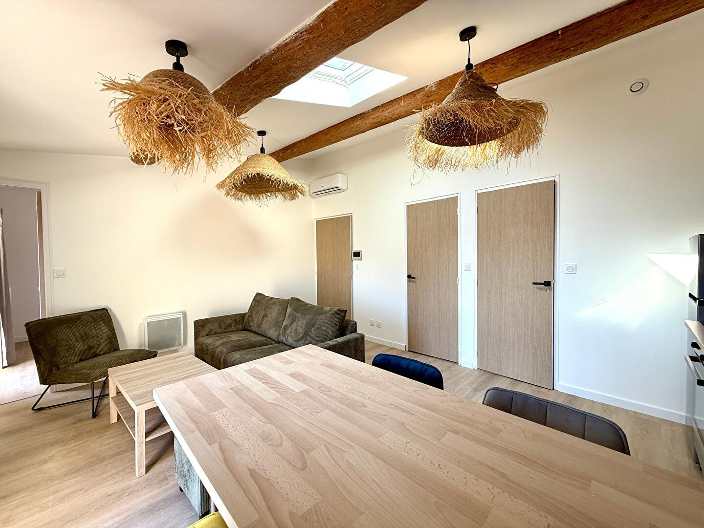Clément de l'agence l'Adresse Gaia Immobilier Mèze vous propose la location ce bel appartement T2 de 37 m² entièrement rénové et meublé avec des matériaux de qualité.