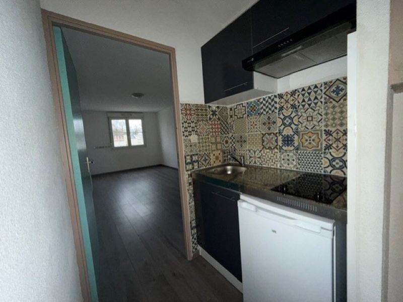 Idéalement situé à proximité de la médiathèque, ce studio se compose d'une entrée, d'une salle d'eau avec toilettes, d'un coin cuisine équipé (plaque de cuisson, hotte et réfrigérateur) ainsi que d'une pièce de vie.