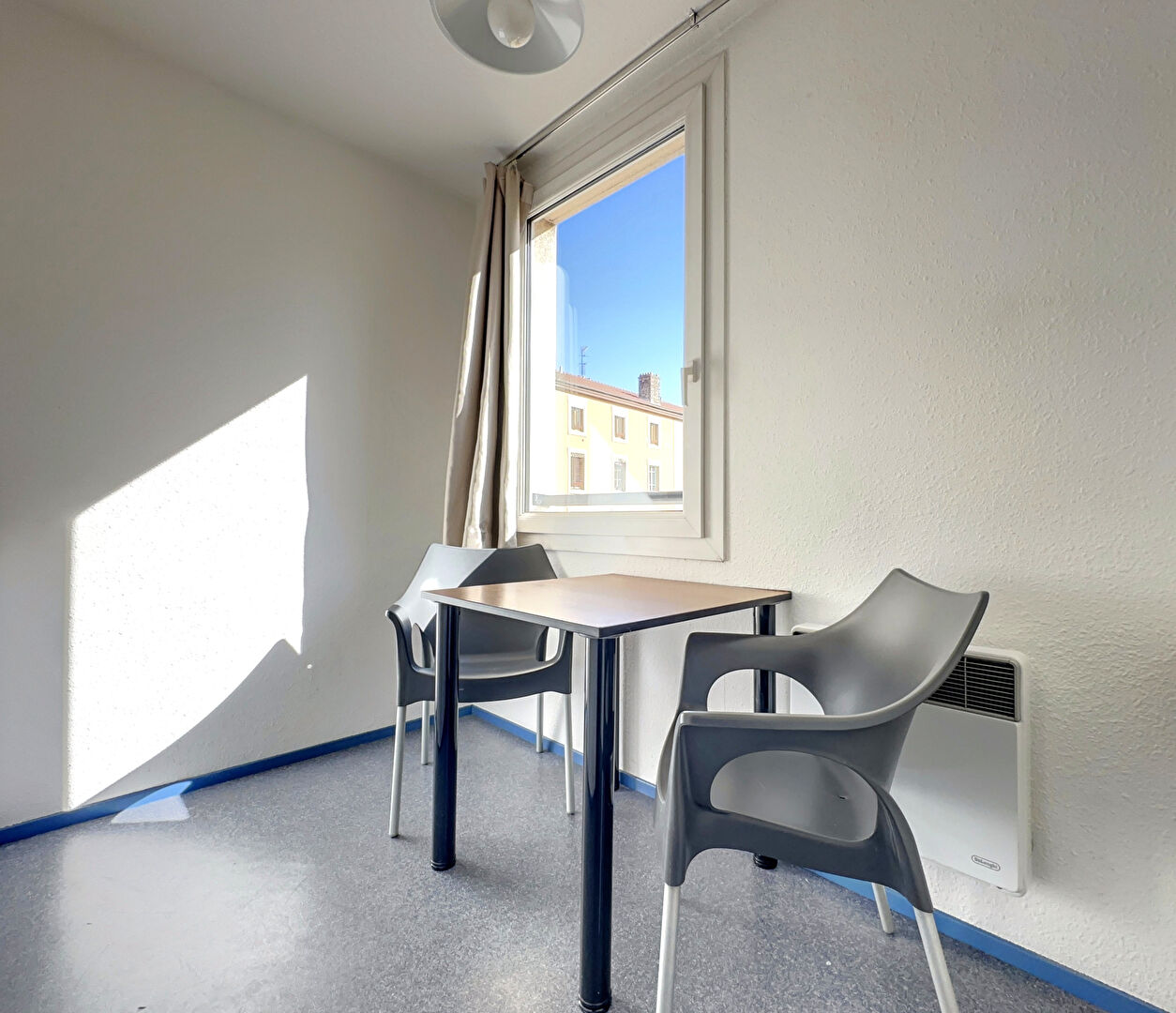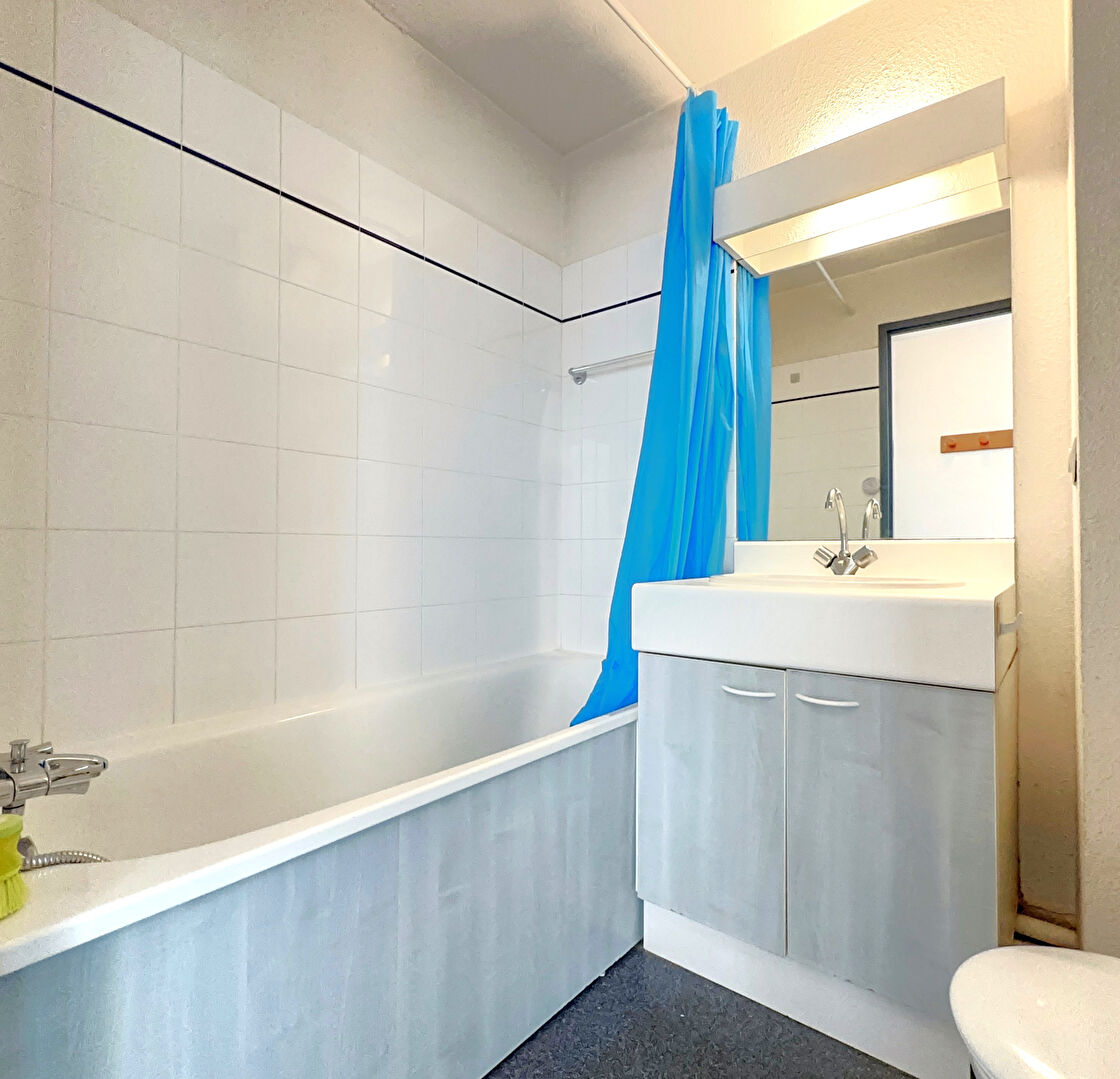 Dans une résidence étudiante, un Studio T1 avec pièce de vie, une cuisine séparée, une salle de bains avec WC et d'un couloir avec placard. Le bien est loué nu (non meublé) mais possède déjà quelques meubles (dépôt de meubles: Lit, sommier, matelas, bureau, chaises, table de cuisine, Kitchenette avec plaques et réfrigérateur)