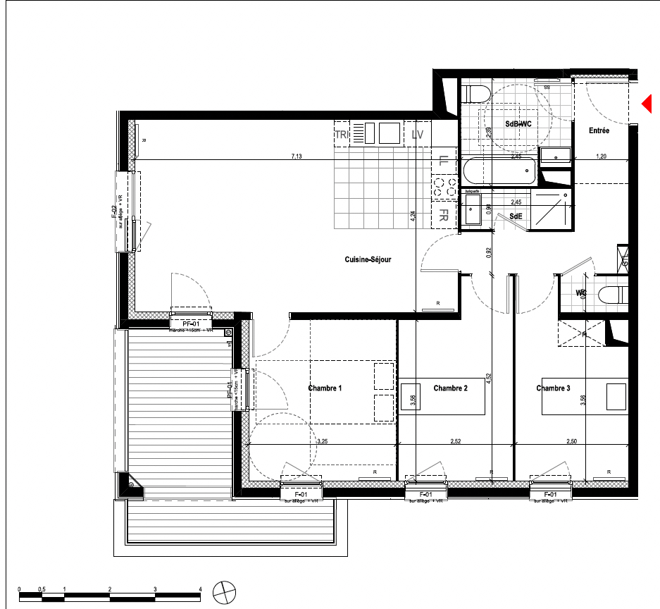 Appartement 4 pièces non meublé de 77.68m2 dans l'éco quartier de Massy Vilgénis.