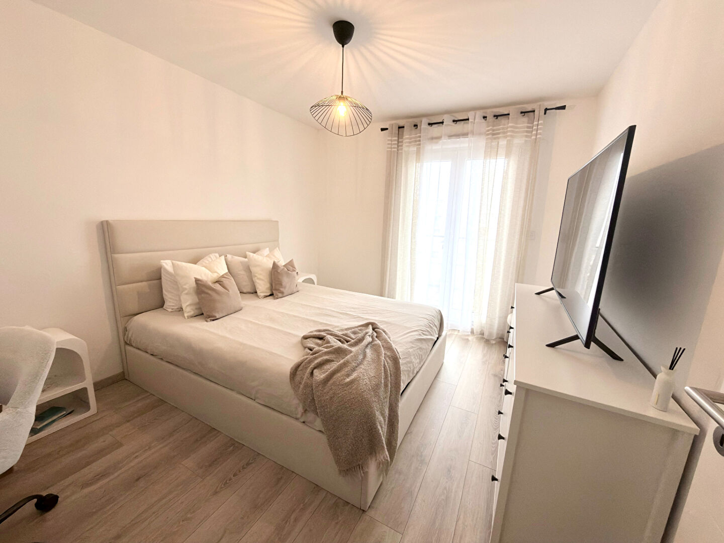 Appartement situé au 1er étage avec ascenseur dans une résidence datant de 2018. Il comprend une entrée avec placards, un salon-séjour avec cuisine équipée, deux chambres, une salle d'eau, un WC séparé et une terrasse.