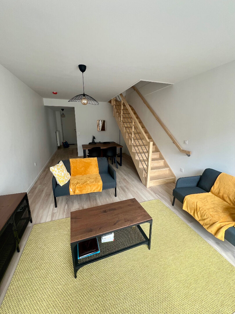 Appartement duplex de 3 pièces se composant d'une entrée, une cuisine équipée et aménagée, un séjour, deux chambres, un séjour et une salle d'eau et deux WC séparés.