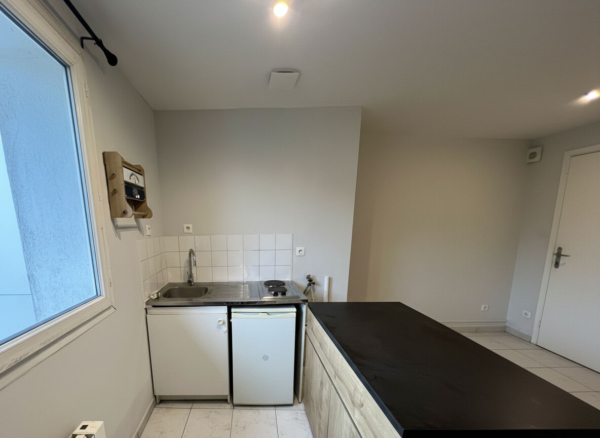 Appartement de deux pièces loué vide se composant d'une pièce principale, une cuisine aménagée, une chambre, une salle d'eau avec WC. Balcon donnant sur cour