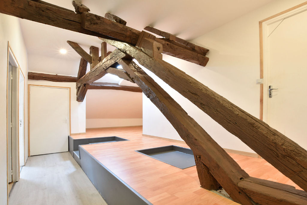 Proche de Mormant, à Bréau, retrouvez dans une résidence calme un appartement de type F4 très atypique avec poutres apparentes comprenant une grande entrée pouvant servir de bureau, salle d'eau, wc, une pièce à vivre avec cuisine ouverte aménagée moderne, trois chambres et un dressing.