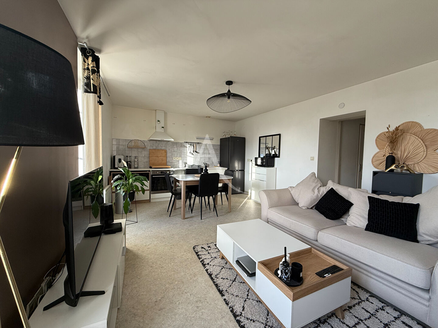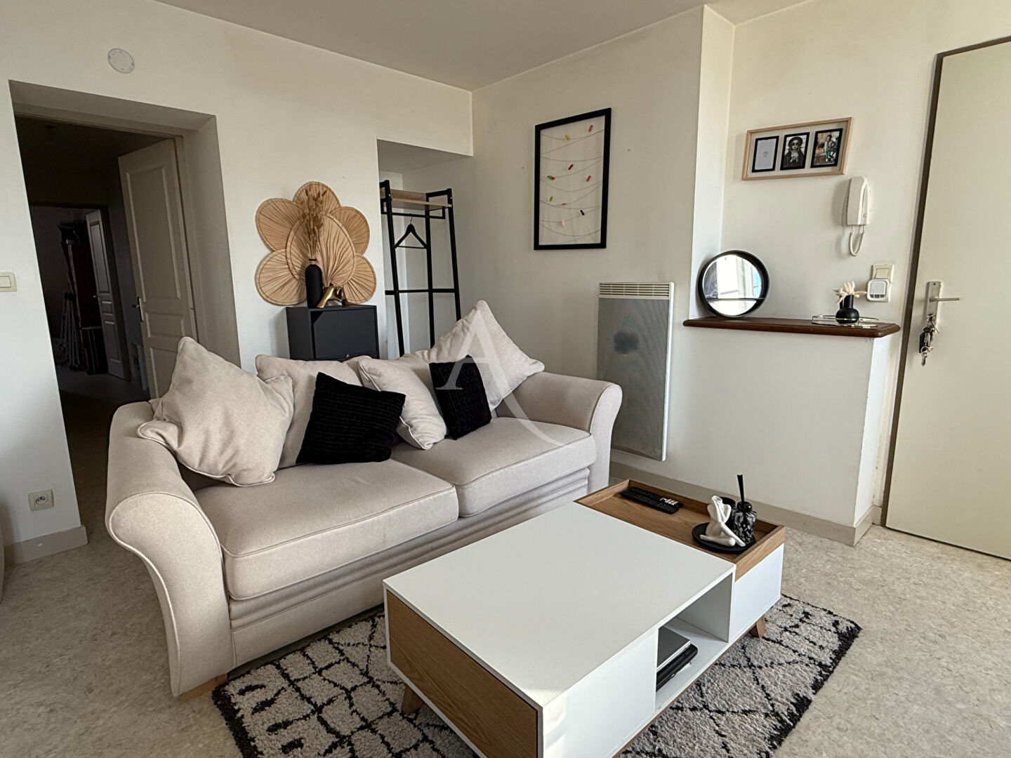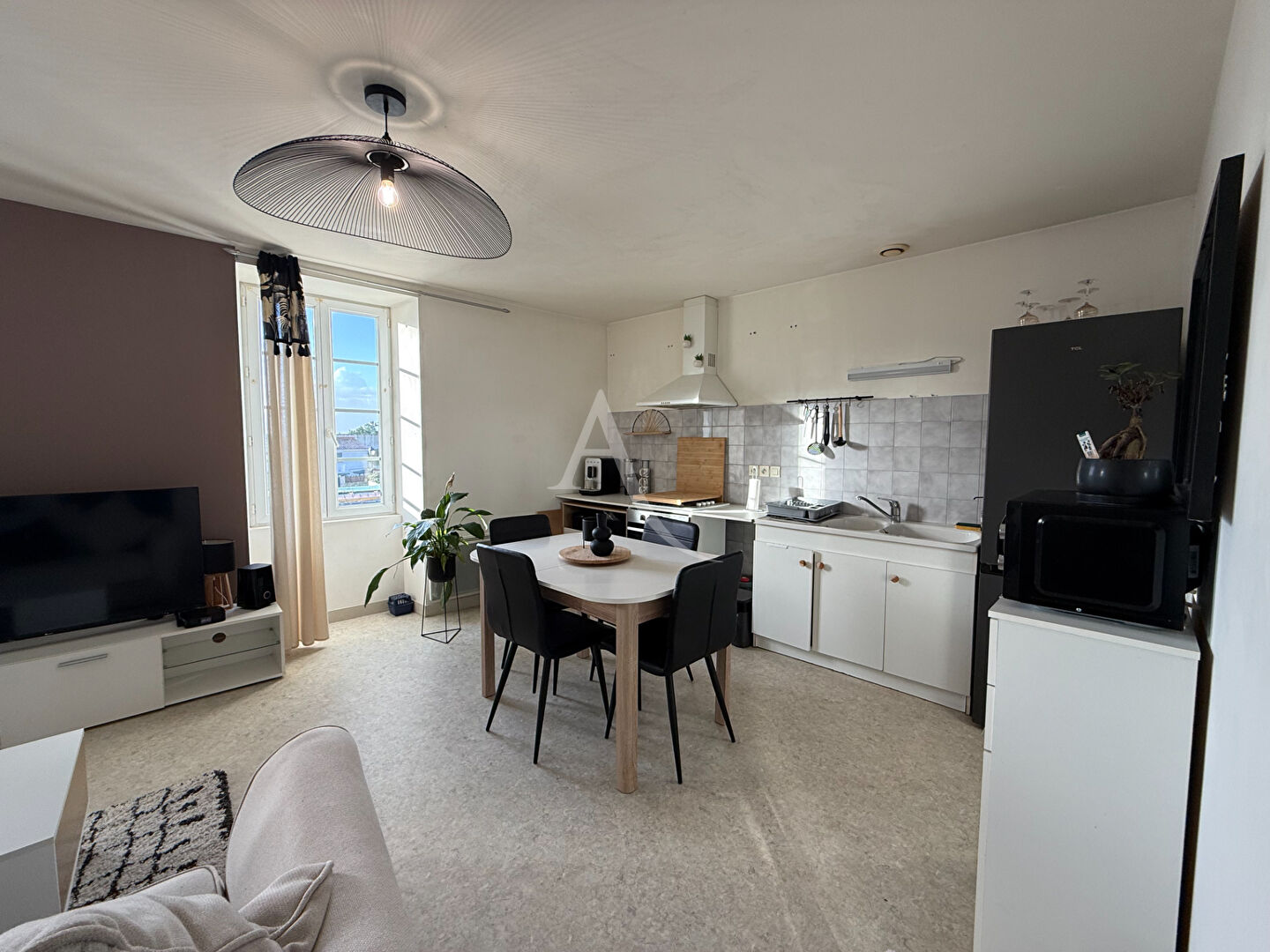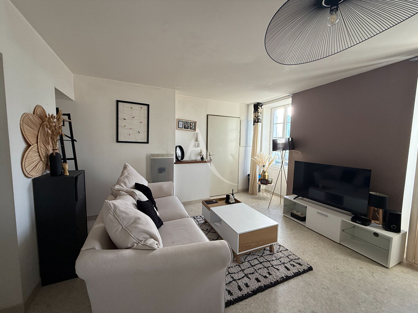 A louer appartement de 50m² environ au première étage d'une résidence calme. Situé entre SAINTES - ROCHEFORT et ROYAN, il se compose d'une entrée desservant une pièce de vie avec cuisine ouverte, un couloir permet d'accéder à une chambre, une salle d'eau, un cellier type dressing et un WC.