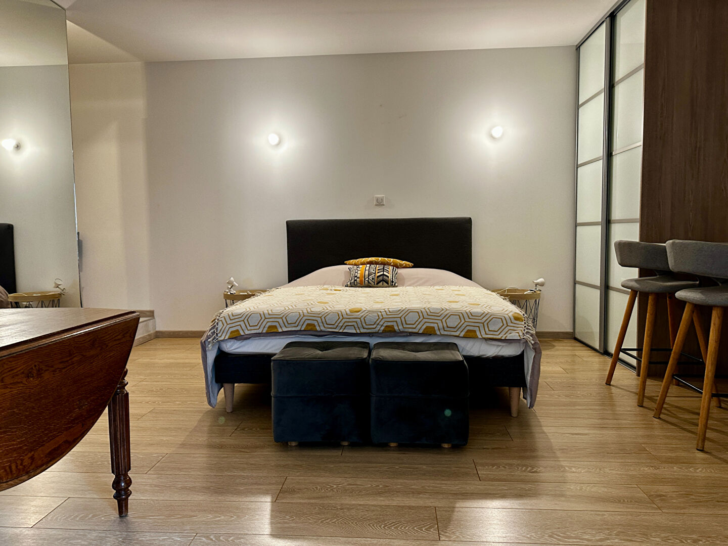 L'espace nuit comprend une grande chambre avec dressings intégrés, disposant d'une salle de bain attenante, garantissant confort et intimité.