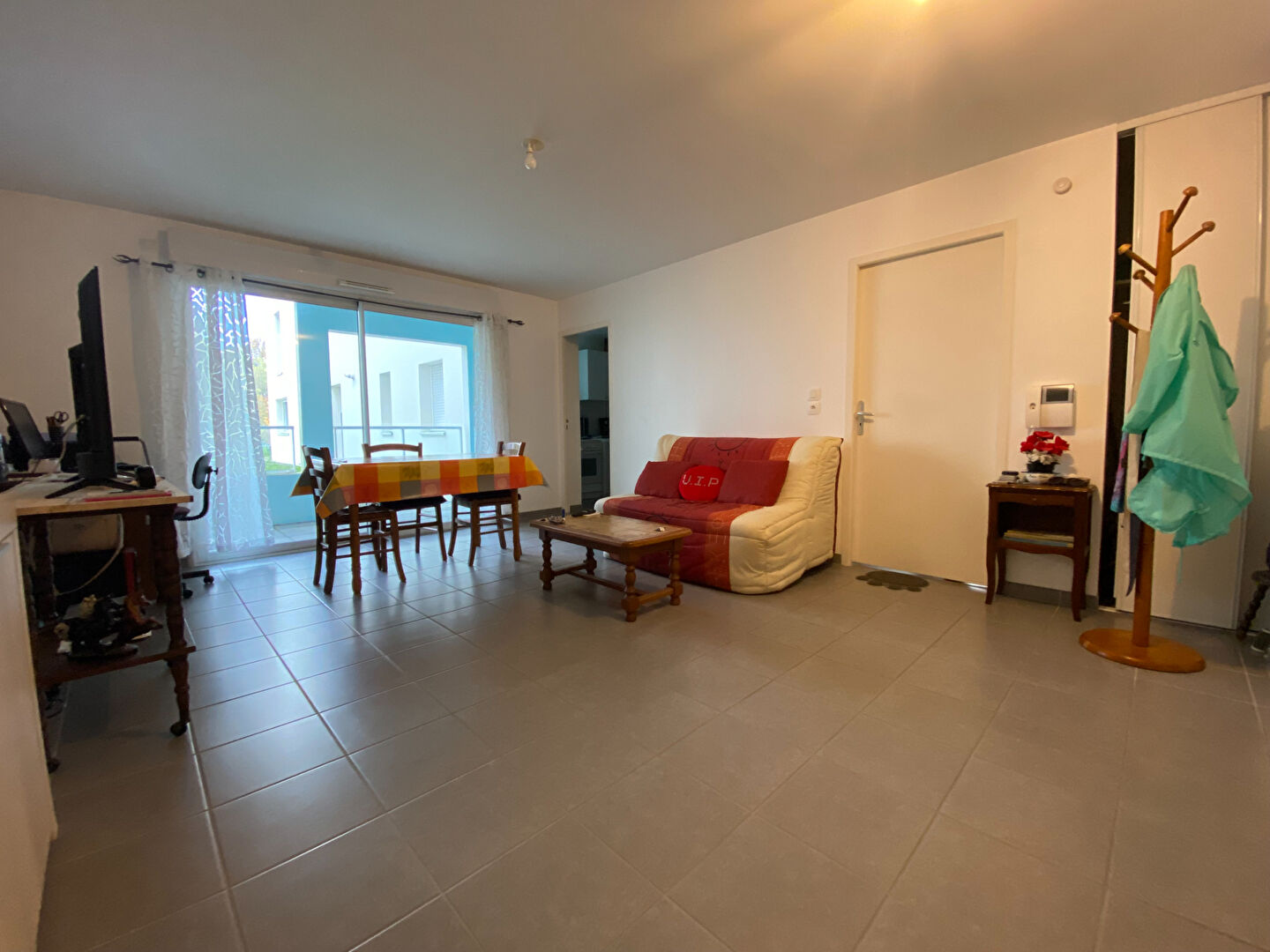 Appartement 2 pièces situé au rez-de-chaussée d'une copropriété composé d'une entrée avec placard, d'un salon/séjour, d'une cuisine aménagée et équipée (plaques et hotte), 1 chambre, une salle d'eau et un WC. Une terrasse et une place de parking.