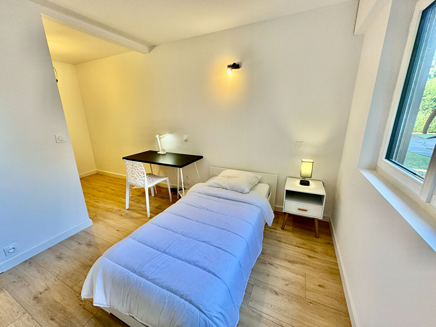 Logement adapté aussi bien à une famille qu'à un groupe d'étudiants (environ 460€/locataire) ou de jeunes actifs. Cet appartement est rénové avec goût, est pensé pour une colocation de qualité : espaces communs chaleureux (salon cosy, TV connectée, cuisine aménagée/équipée), jardin privatif et 3 chambres indépendantes.