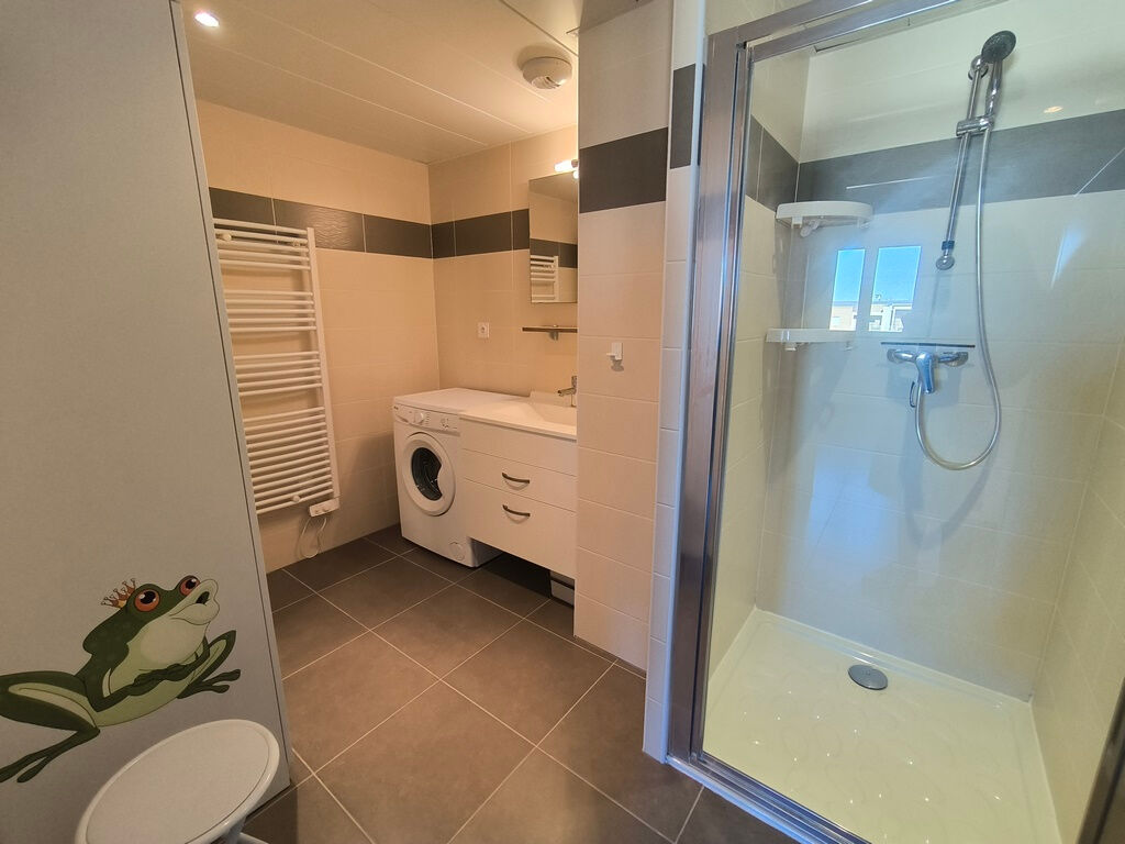 Il dispose d'une lumineuse pièce de vie de 23 m² avec cuisine entièrement meublée et équipée (hotte - plaque de cuisson - lave vaisselle - frigo - micro-ondes), 2 chambres avec placard, une salle d'eau avec WC. Il dispose également d'une belle terrasse d'environ 13 m² exposée Sud au calme, avec vue dégagée.