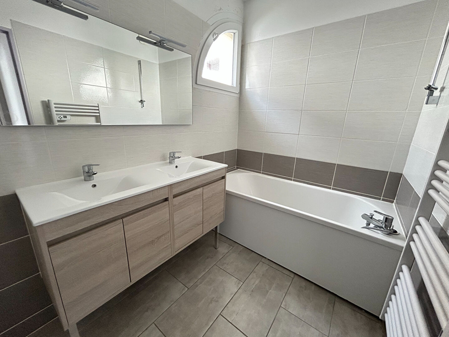 Il se compose d'un spacieux séjour lumineux, de trois chambres, d'une cuisine moderne aménagée et équipée (hotte, four, plaque vitrocéramique), d'une salle de bains et double vasque.