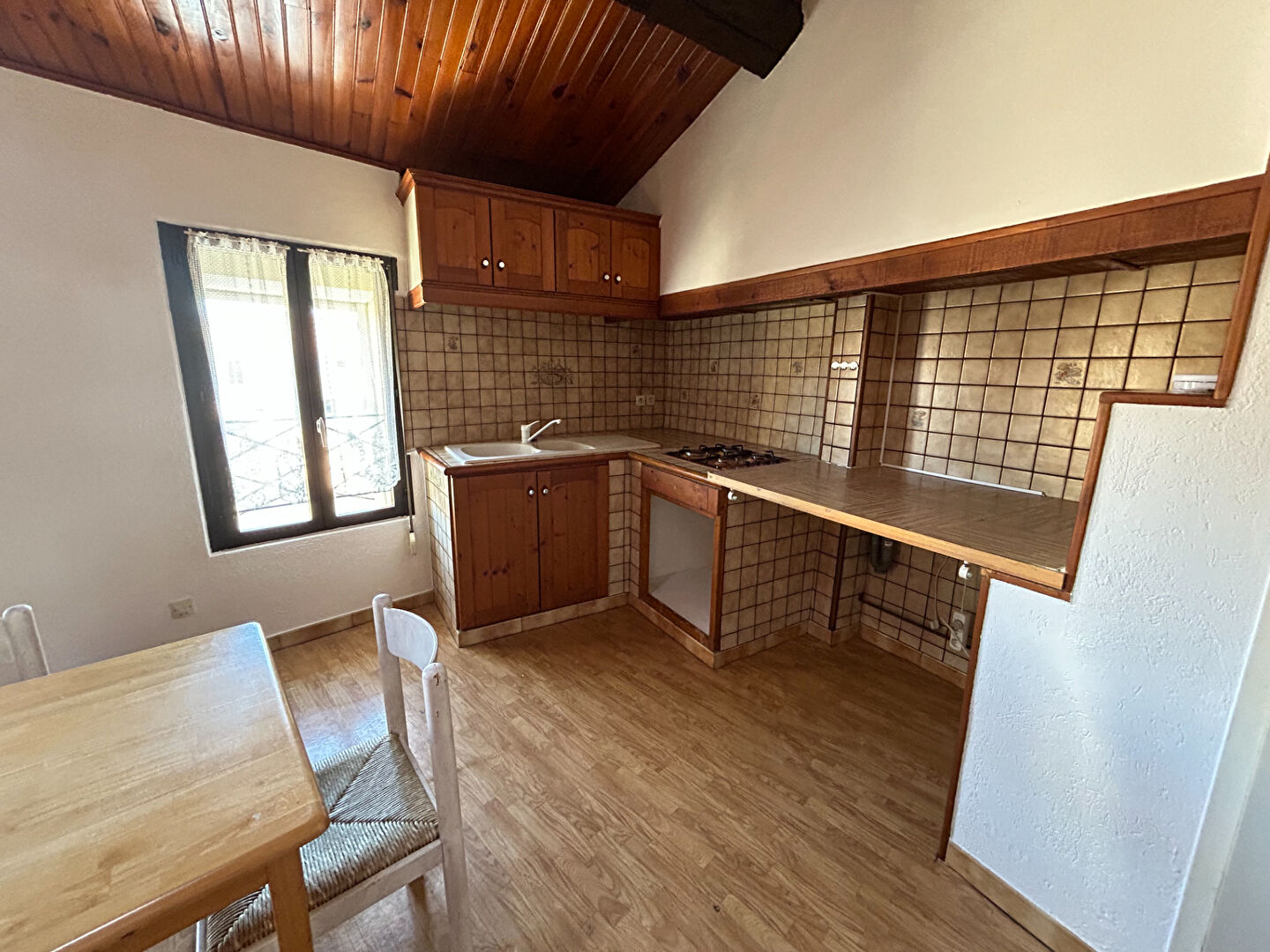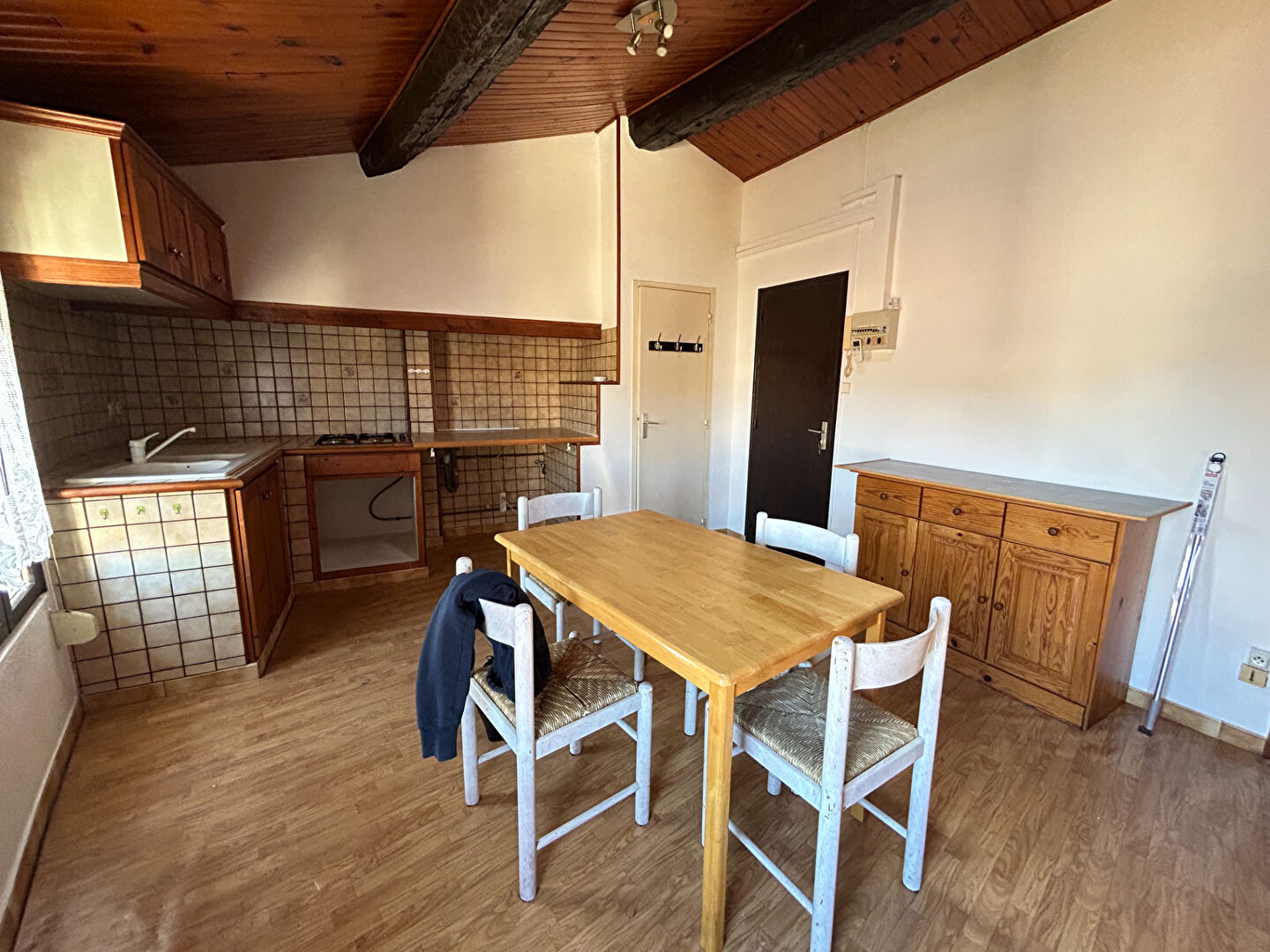 Le logement se compose d'une pièce de vie agréable avec placard de rangement, d'une cuisine équipée d'une hotte et d'une plaque de cuisson au gaz (bouteille), ainsi que d'une salle d'eau récente.