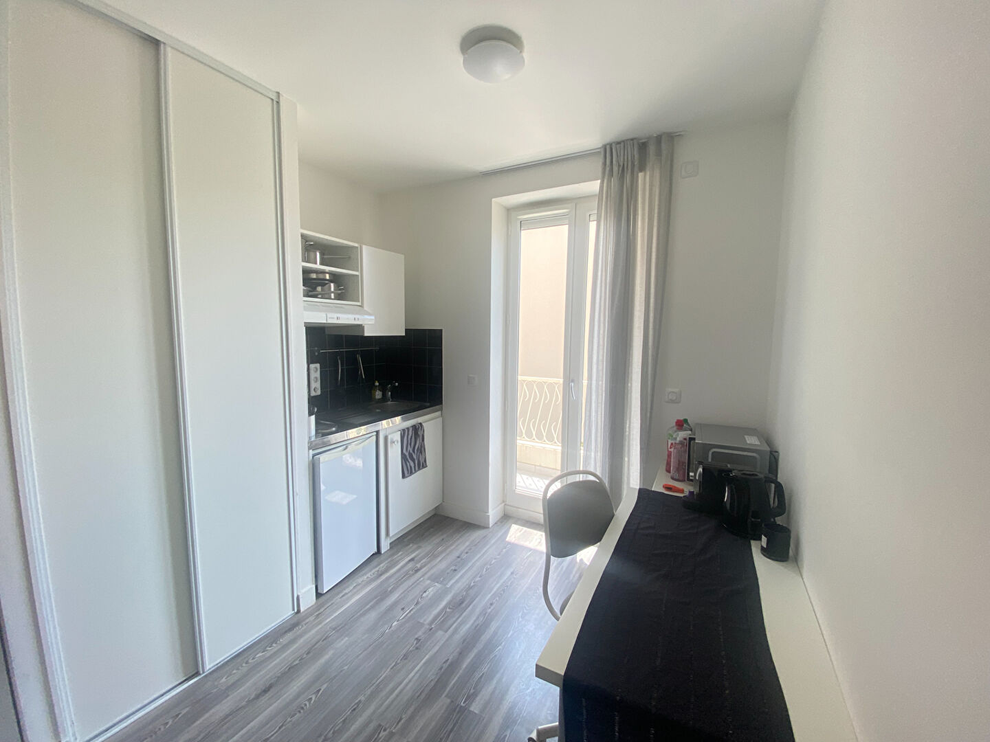 Joli studio meublé, composé d'une pièce à vivre avec cuisine ouverte, une salle de douche avec WC et un balcon. CLIMATAISATION réversible.