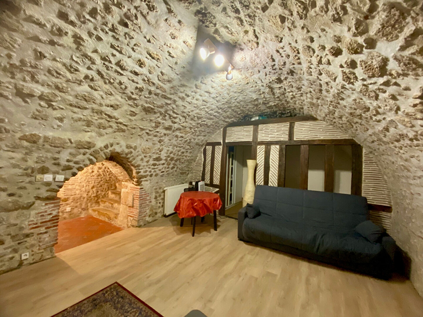 Proche des bords de Loire, secteur cathédrale, appartement atypique comprenant une cuisine, pièce principale, une salle d'eau avec WC, une chambre. Une cave en souplex pouvant servir de bureau.