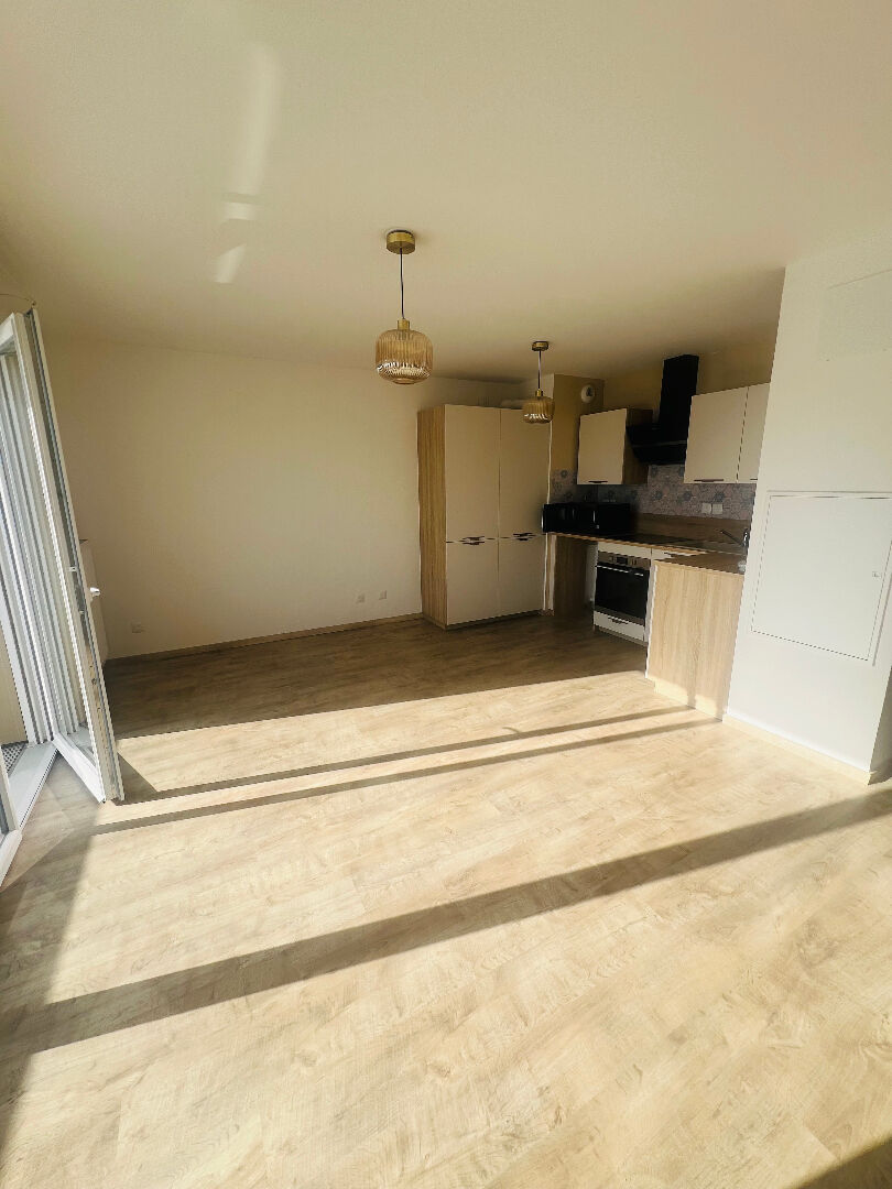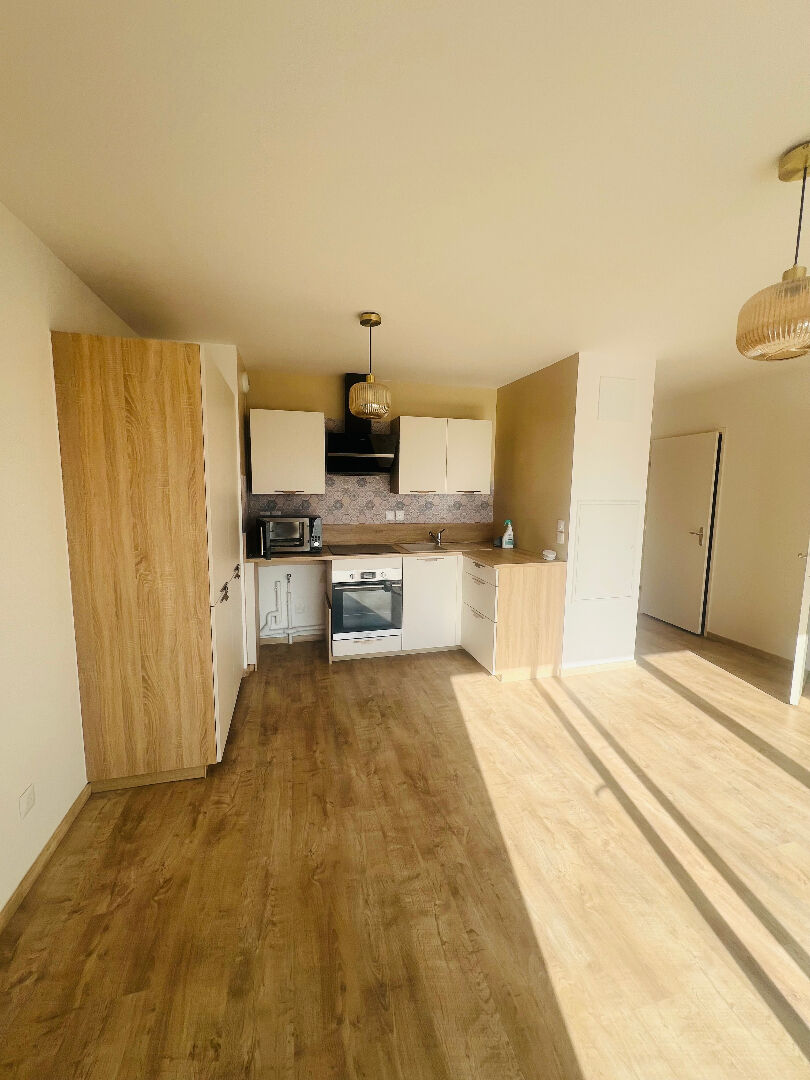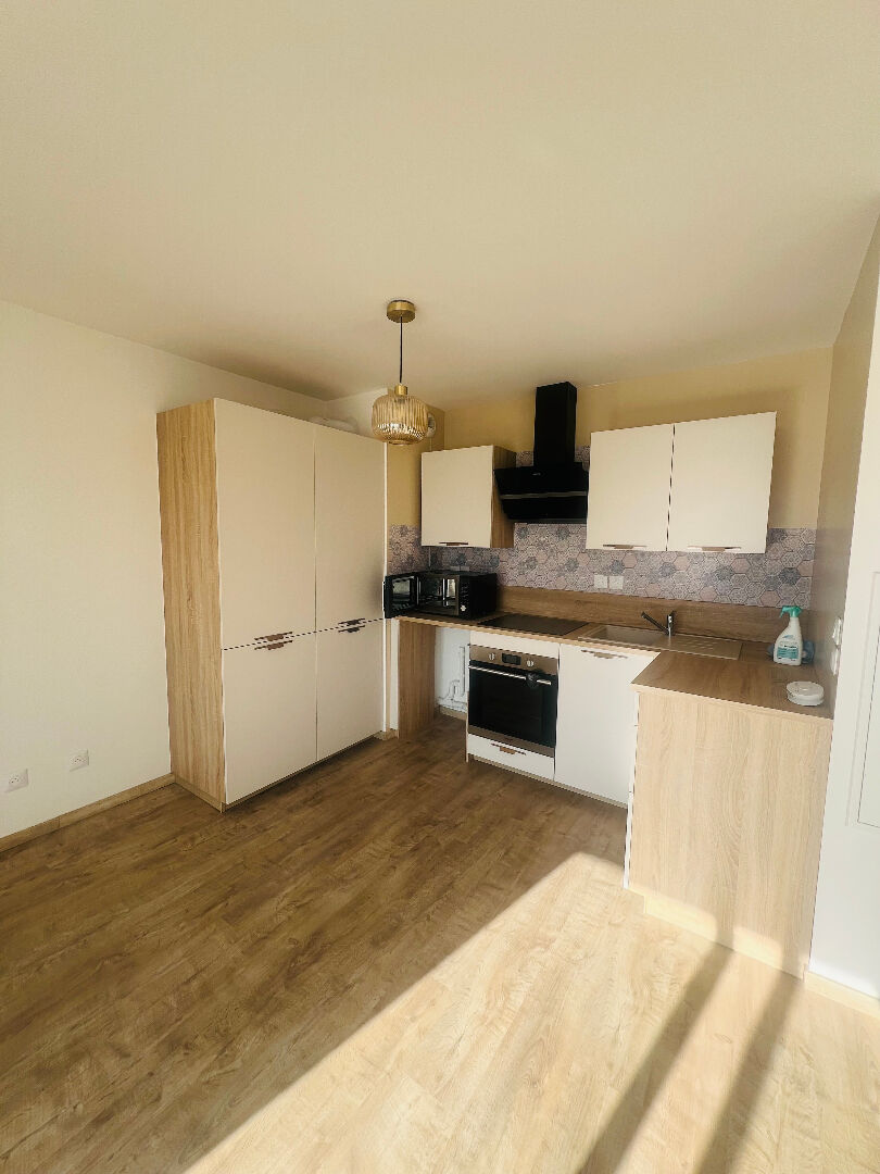 Proche de tous les commerces et du tram, appartement dans Résidence de 2024 comprenant une entrée avec placard, une cuisine ouverte aménagée et équipée donnant sur le séjour, un WC, une chambre, une salle d'eau. U,n balcon