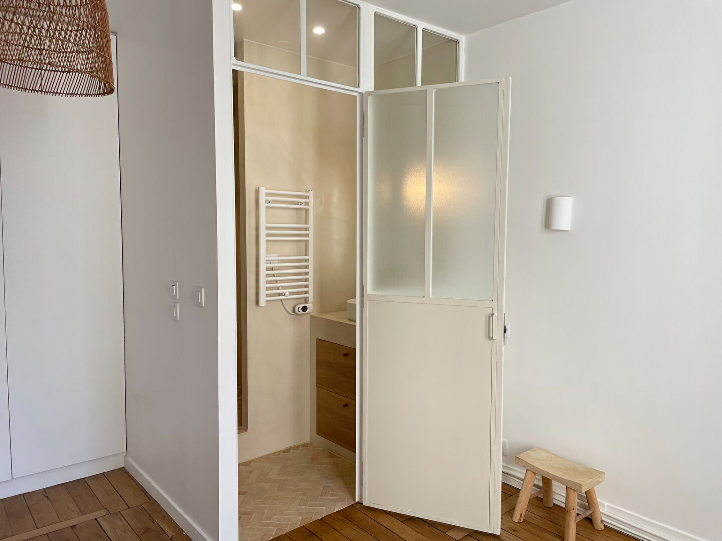 L'appartement se compose d'une grande entrée pouvant accueillir un espace bureau, d'une spacieuse pièce de vie baignée de lumière avec accès à un balcon offrant une vue dégagée sur un superbe immeuble parisien, une cuisine entièrement meublée et équipée , une chambre avec beaucoup de rangement fait sur mesure, avec une salle de d'eau attenante, toilettes séparées.
