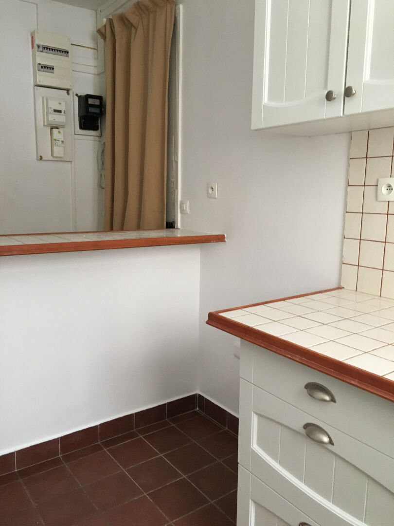 L'appartement se compose d'une entrée ouverte sur la cuisine, d'un séjour, d'une chambre, d'une salle d'eau, de WC séparés et d'un dressing, offrant un espace de rangement appréciable.