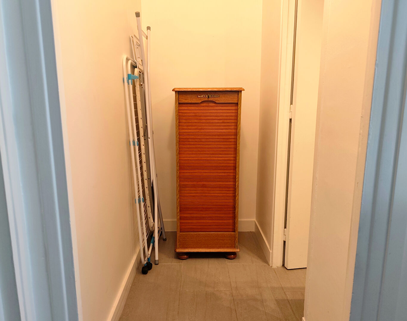 Il comprend une entrée avec de grands placards qui dessert une belle pièce à vivre, une cuisine aménagée et équipée (palques, hotte, lave-linge, frigo-congélateur...) et une salle d'eau avec WC.
