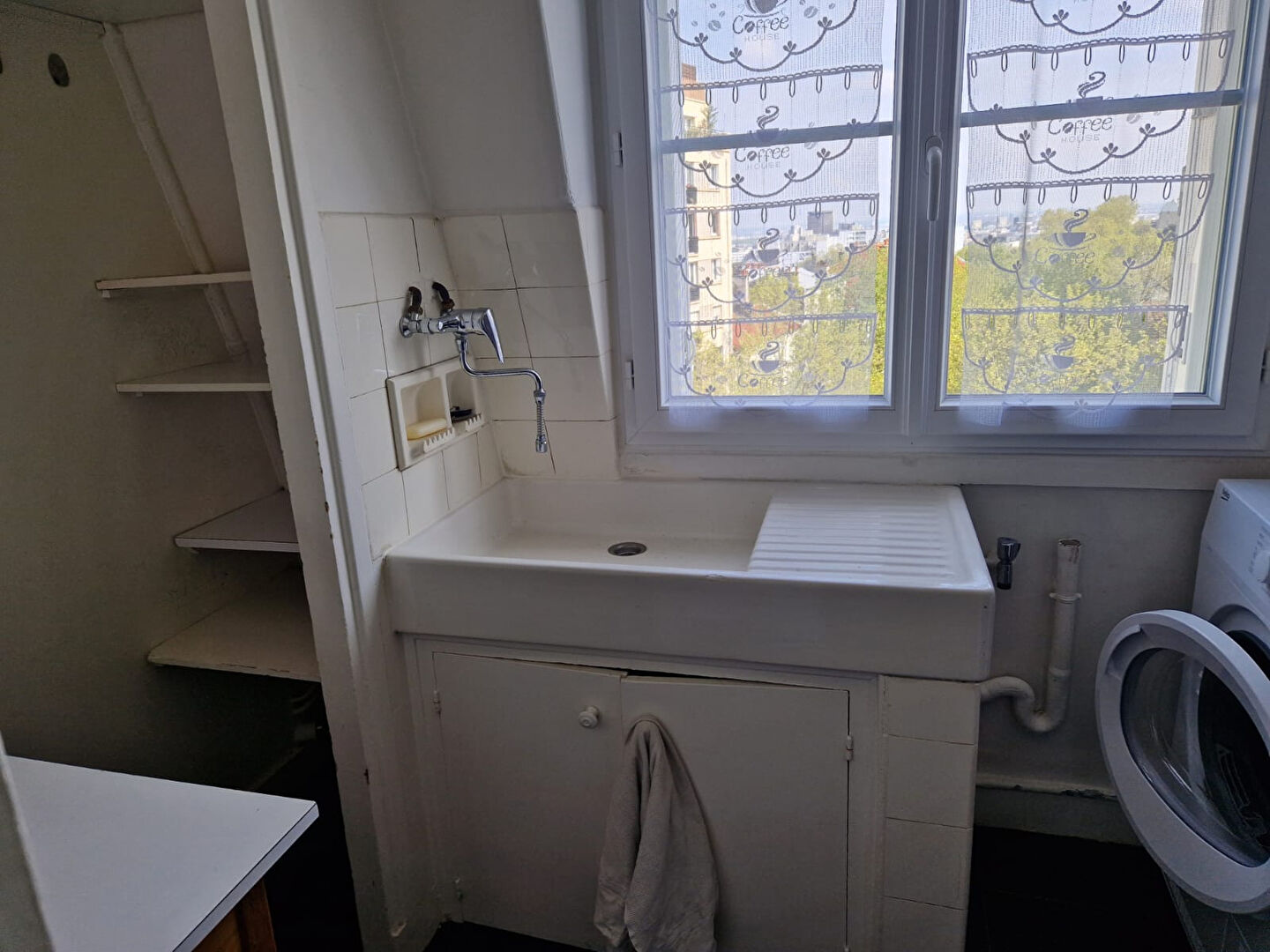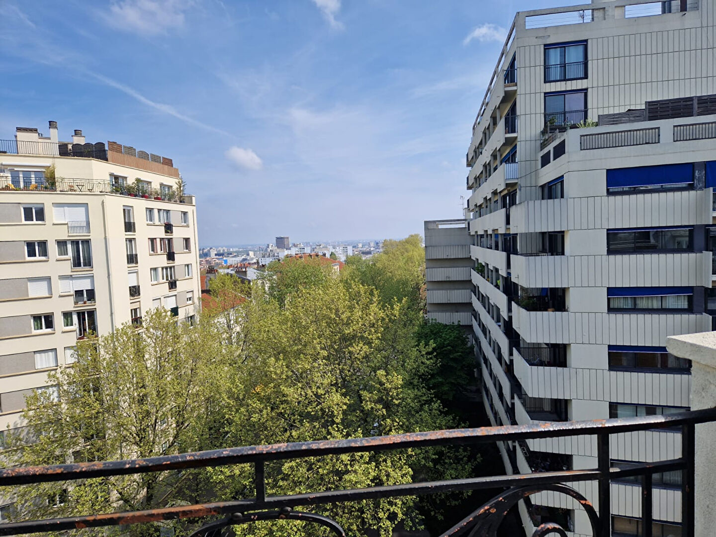 Situé sur le haut des Buttes Chaumont, dans un immeuble des années 20, secteur recherché, appartement au 7ème étage avec ascenseur, avec vue dégagée, sans vis à vis, comprenant une entrée, un séjour avec balcon, une chambre et un bureau, une cuisine indépendante, une salle d'eau avec wc. Les charges comprennent l'eau et le chauffage. Ref : 458.