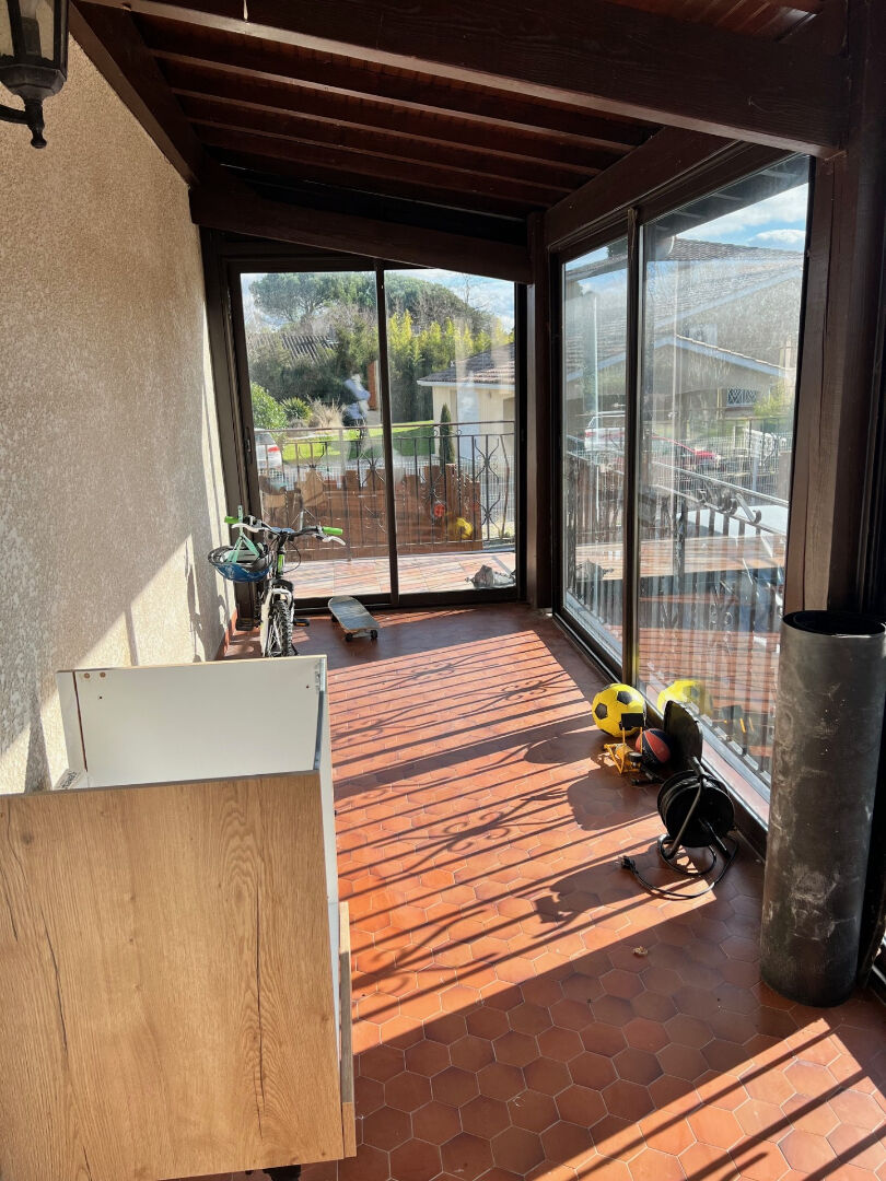 PLAISANCE DU TOUCH au 1 er étage d'une villa T4 de 115 m2 un grand séjour avec cheminée ,une cuisine équipée, une terrasse avec veranda accés a un jardin