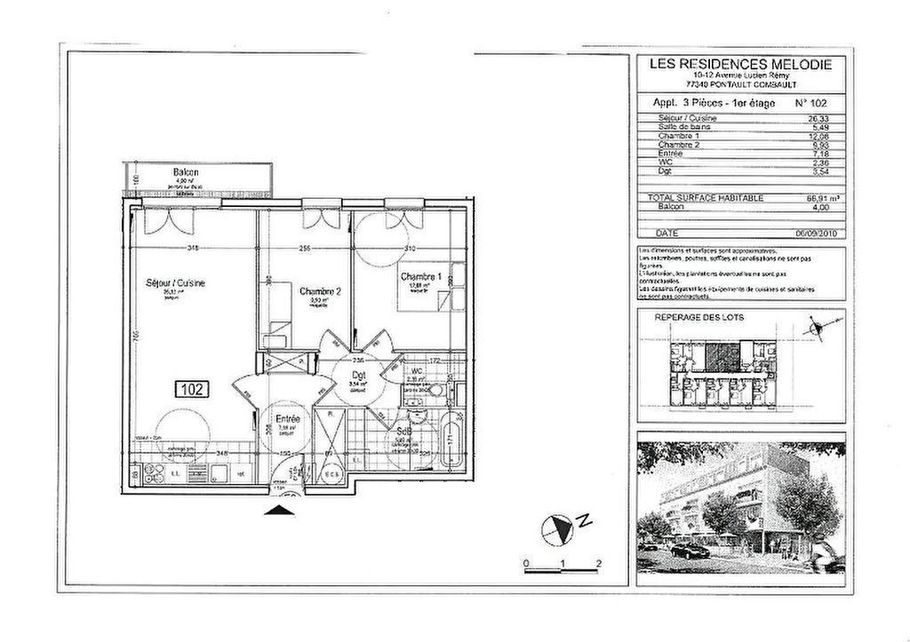 Pontault Combault, 3 pièces, 66.91 m²