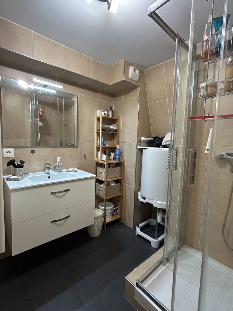 Situé au deuxième étage, ce lumineux appartement de plus de 38 m² (45,35 m² au sol) comprend au rez-de-chaussée une entrée, un séjour avec cuisine ouverte aménagée et équipée (réfrigérateur/congélateur, plaques à induction, hotte, micro-ondes, four, lave-vaisselle), une salle d'eau et des WC séparés avec rangements et lave-linge.