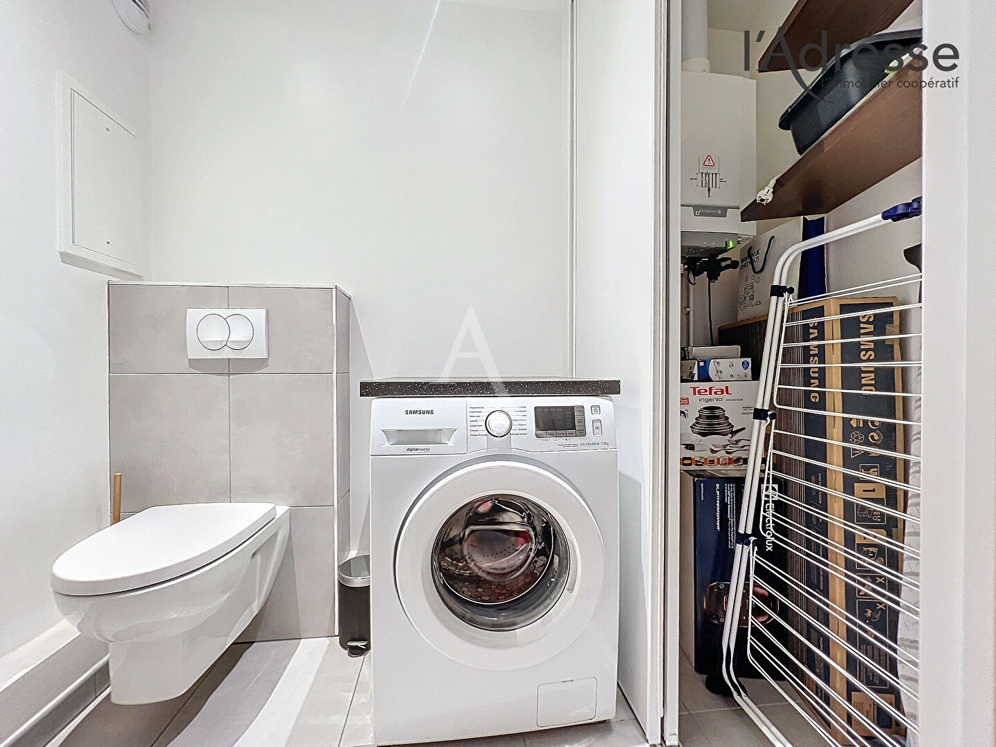 Agencé de la manière suivante : une entrée, un toilette séparé avec buanderie, une cuisine (aménagée et équipée) ouverte sur lé séjour, une chambre avec dressing et salle de bains attenante.