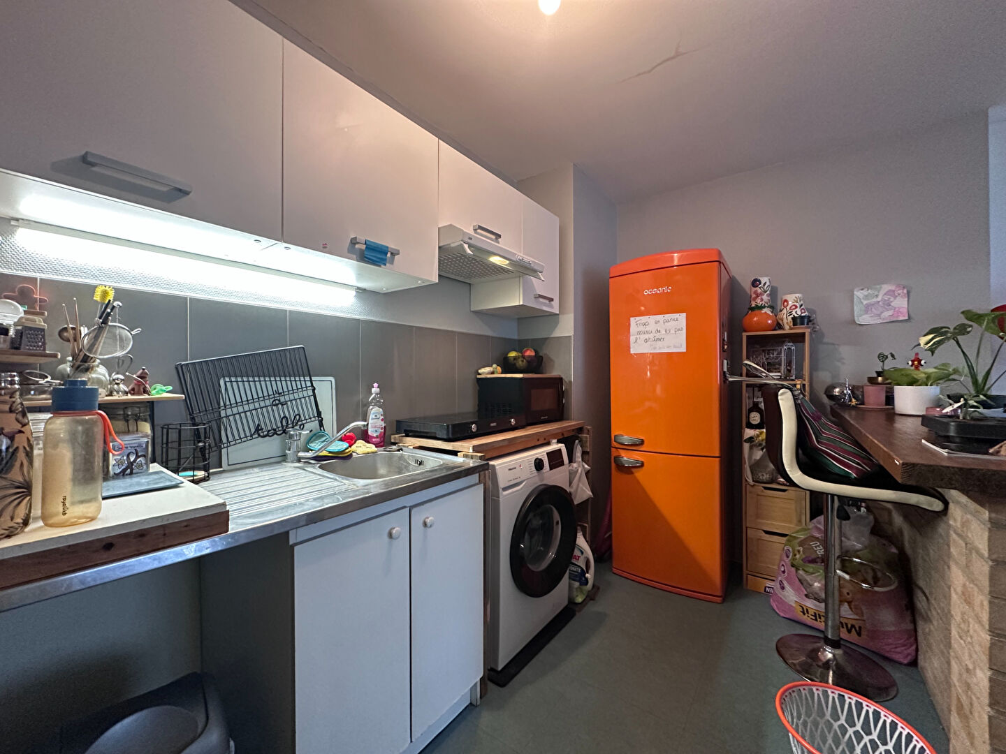 Dans une résidence sécurisée, un appartement Type 2 de 44m². Composé d'une entrée, un séjour, une cuisine ouverte sur séjour équipée d'un réfrigérateur et de plaques électriques, une chambre, une salle de bains avec WC.